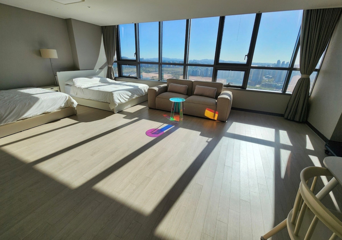 ❄️A/C on now❄️ ✅Lots of restaurants, bar, cafes ✅5 min to Convensia, Mart, Park ✈️28min by taxi($20) from Incheon Airport, 40min by direct bus 303-1, 6777($2) 🫧Modern & Gorgeous days with a view better than a hotel🫧 - Central Park, city view, night view, stunning sunset - Modern Italian luxury lighting and furniture🇮🇹 - Convenience facilities such as laundry, drying rack, cooking, and microwave suitable for long-term stays - Tableware, glasses, and bathroom supplies carefully considered