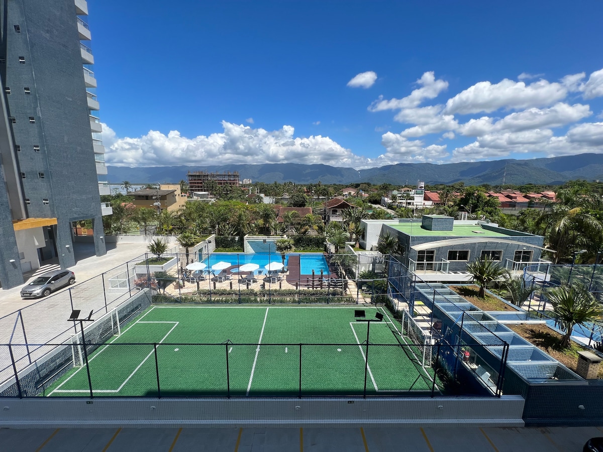 Apartamento novo, ideal para relaxar e descontrair com os amigos e família. Ele é localizado na Praia do Indaiá, em Bertioga, a menos de 100metros da praia. Os hóspedes tem total ao acesso à área de lazer do condomínio que conta com piscina adulto e infantil, sauna, quadra de futebol, cinema, salão de jogos, pista de skate, jacuzzi, churrasqueira, academia, playground e serviço de praia com cadeiras e guarda-sol. Leve toda a família e amigos a este ótimo lugar com muito espaço para se divertir.