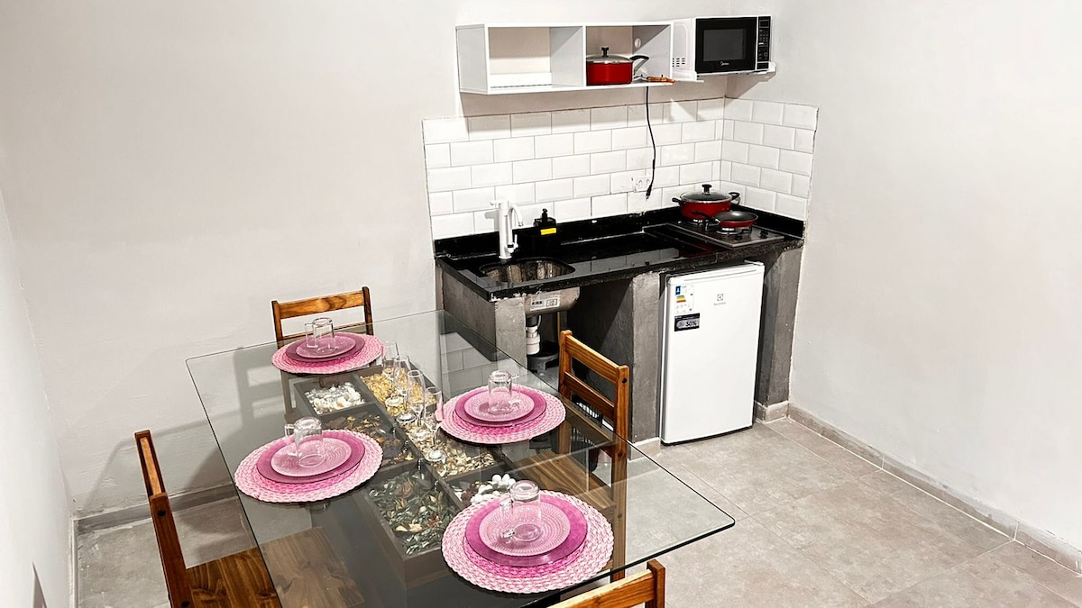 Charming loft,standing in the sand on one of the most beautiful and trendy beaches of Ilhabela. Carefully equipped to offer a comfortable and unforgettable stay,it has air conditioning,ceiling fan,electric shower with stall,refrigerator,sink, microwave, electric oven, coffee machine, and other accessories. Double sofa-bed, single bed, and two extra inflatable double mattresses. Outside we have a deck on the sand in front of the sea, a shower, a hammock swing under a treetop, tables, and benches.
