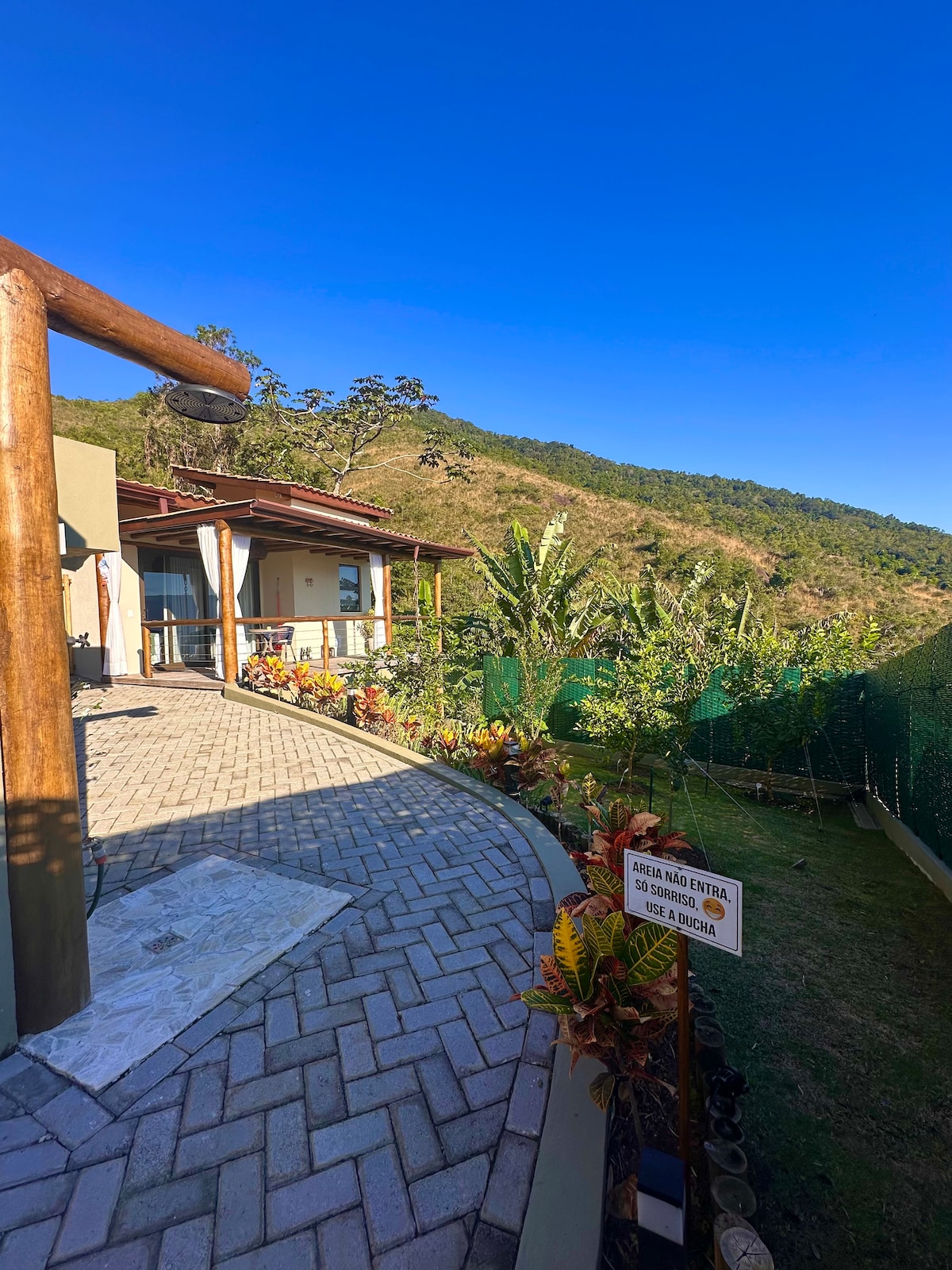 Imagine-se em um lugar onde tudo foi preparado com capricho, para que você tenha uma experiência única: os ares de uma chácara mesclados às belezas do mar e em uma localização de fácil acesso, próxima à rodovia. Esta é a Casa das Mangueiras! Situada entre um bosque de mangueiras e a praia, a casa proporciona um ambiente tranquilo, reservado e com uma piscina aquecida exclusiva para você. Namaste. Aceitamos 1 pet por estadia até 20 kg.