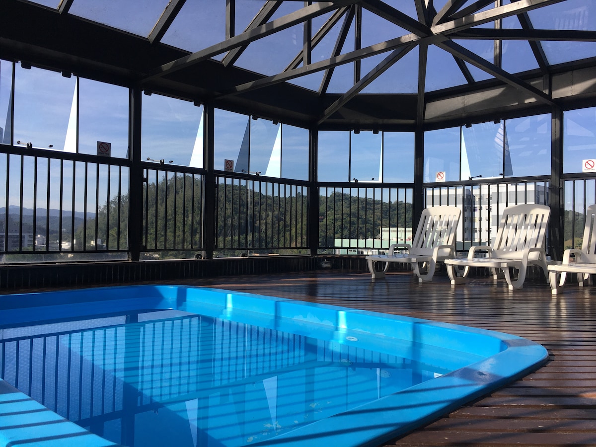 Beautiful studio apartment with garage, in the center of Blumenau, near everything! Building has a gym and an incredible rooftop pool. The apartment is complete and very stylish. Double bed, sheets, covers, pillows, bath towels, AC. Full kitchen with refrigerator, microwave and tableware for 2. Laundry with washer+dryer machine, iron table and iron.