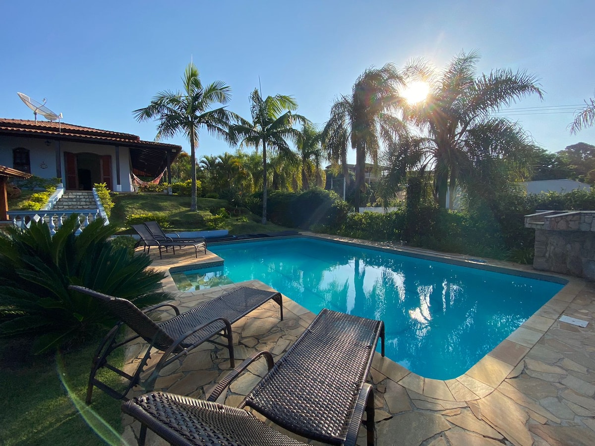 Relax and enjoy unforgettable moments with your family n Friends! Stay in a charming country house at Vale das Laranjeiras Condominium in Indaiatuba, just 10 minutes from the city center. Take advantage of the pleasant weather to enjoy the pool and prepare a delicious barbecue. Experience total privacy, security, and tranquility, surrounded by nature, while still having the convenience of excellent restaurants and bars just minutes away.