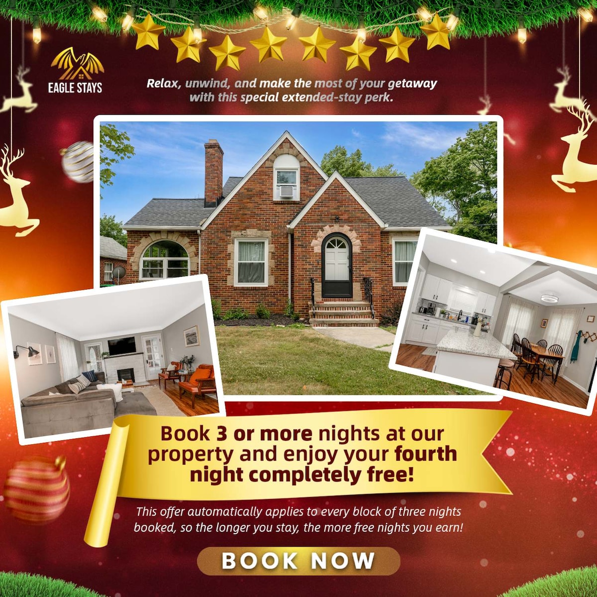 WINTER DISCOUNTS! Gather family or friends for an unforgettable getaway in a spacious, pet-friendly, amenity-rich oasis in a quiet neighborhood. You’ll find fun and relaxation at Serenity At Seven Hills with its loaded gameroom, games, hot tub, Jacuzzi tub, and large, fenced yard. You’ll love the proximity to Cleveland and the garage parking and EV charger. Guests rave about host responsiveness; one guest called it “Best Airbnb we have stayed in.” Everything you need is here.