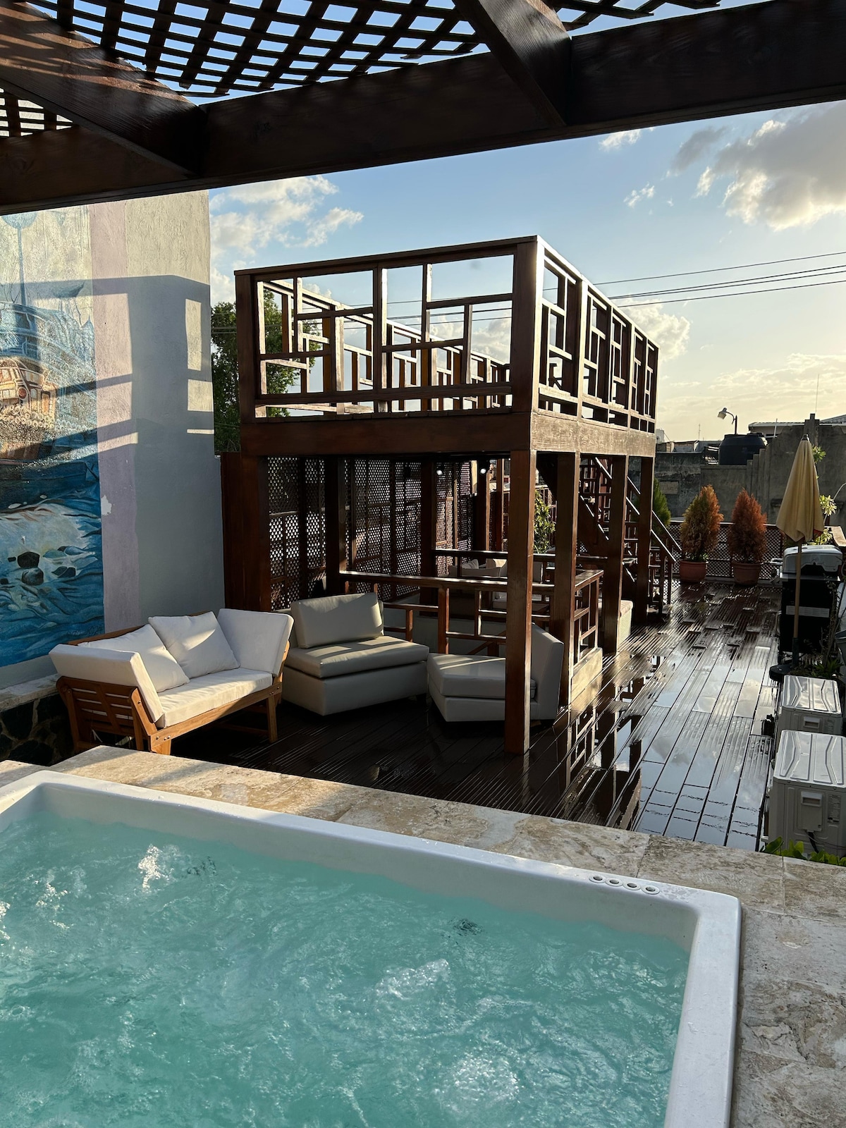 ✨ Modern apartment with private jacuzzi • 🛁 Private jacuzzi • 🔥 Terrace with BBQ • 🛏 Super comfortable King bed • ❄️ A/C in all areas • 📺 Smart TV • 📶 Fast Wi-Fi (perfect for remote work) • 🍳 Fully equipped kitchen • 🚗 Private parking 📍 Only 13 minutes from the Colonial Zone, close to supermarkets, restaurants, and shops. 💼 Perfect for tourism, remote work, or long stays. ✨