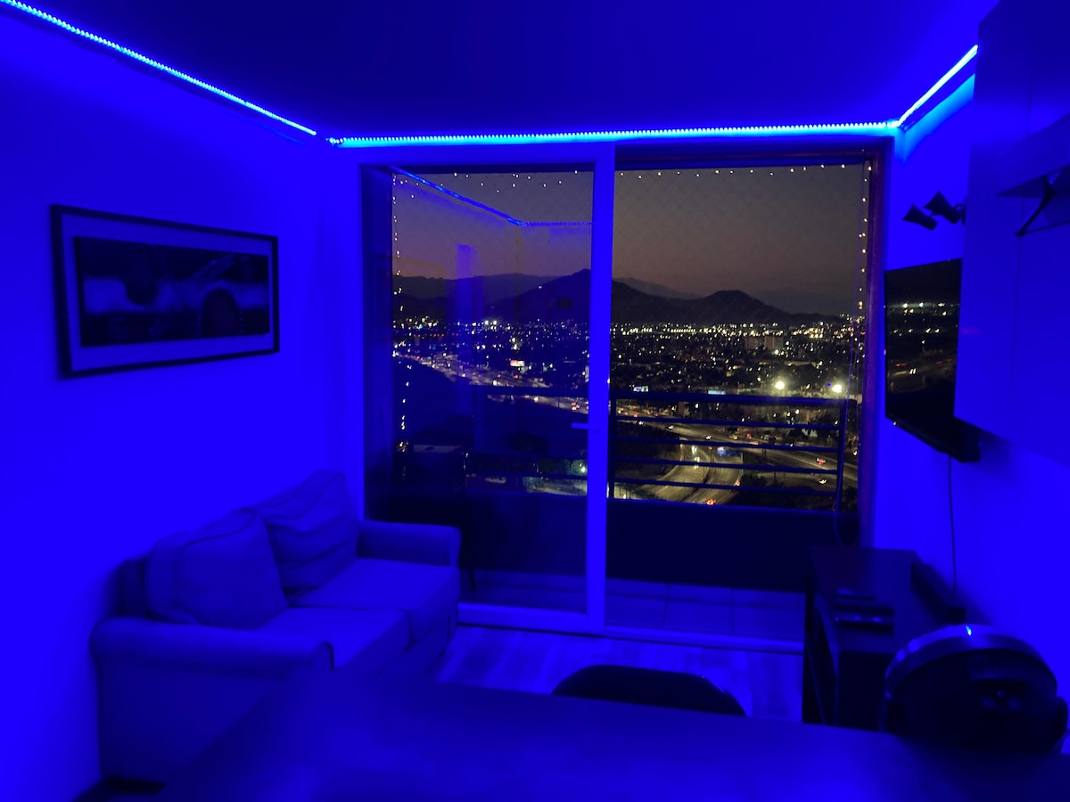 This apartment is ideal for relaxing and enjoying the city. It's centrally located, between the Santiago Centro and Providencia districts, one of the best locations in the city. It offers beautiful views of San Cristóbal Hill and the Sky Costanera. It's just a 3-minute walk from the metro and buses. Includes: Free Wi-Fi, a fully equipped kitchen, sheets and towels included, a large bed with a large Smart TV. Self-service entrance with a key, allowing you to arrive at any time.