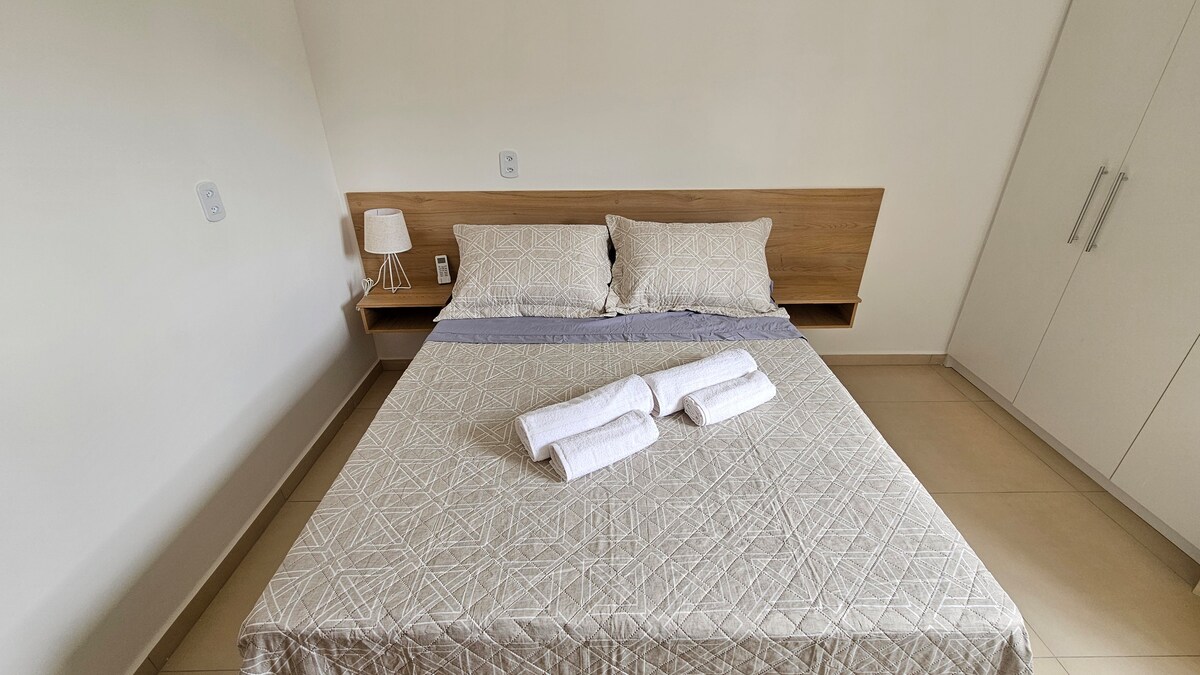 Apartamento completo todo planejado. Cozinha c/ coifa, microondas, forno, cooktop, geladeira, armários planejados, cozinha equipada para sua estadia (pratos, talheres, xícaras, copos, travessas, panelas, garrafa de café e demais utensílios essenciais para uma estadia confortável. Mesa com 4 cadeiras, SMART TV 50', sofá confortável, dois quartos, sendo um com duas camas de solteiro e um com cama de casal. Quartos com guarda roupas e cortina com blackout. Máquina lava/seca. Roupas de cama e banho.