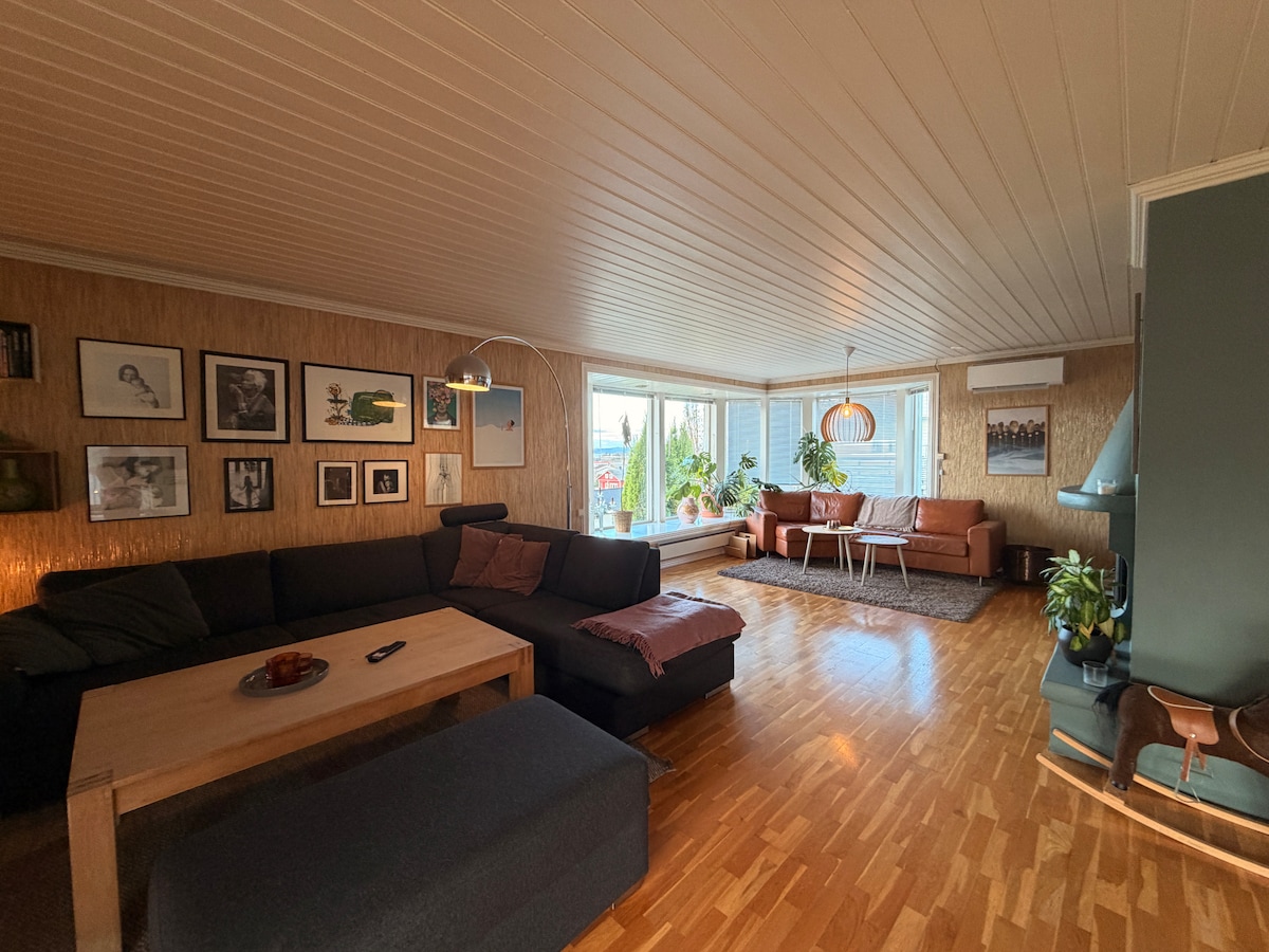 Her bor du kort vei fra sentrum og 50 meter fra en barneskole, med det du kan forvente av en skolegård. Huset har en romslig og koselig uteplass med to sittegrupper, og en koslig hage uten innsyn. Dette er et bebodd hjem til vanlig, og det vil dere merke når dere bor her. Ønsker ikke at boligen skal brukes til fest.