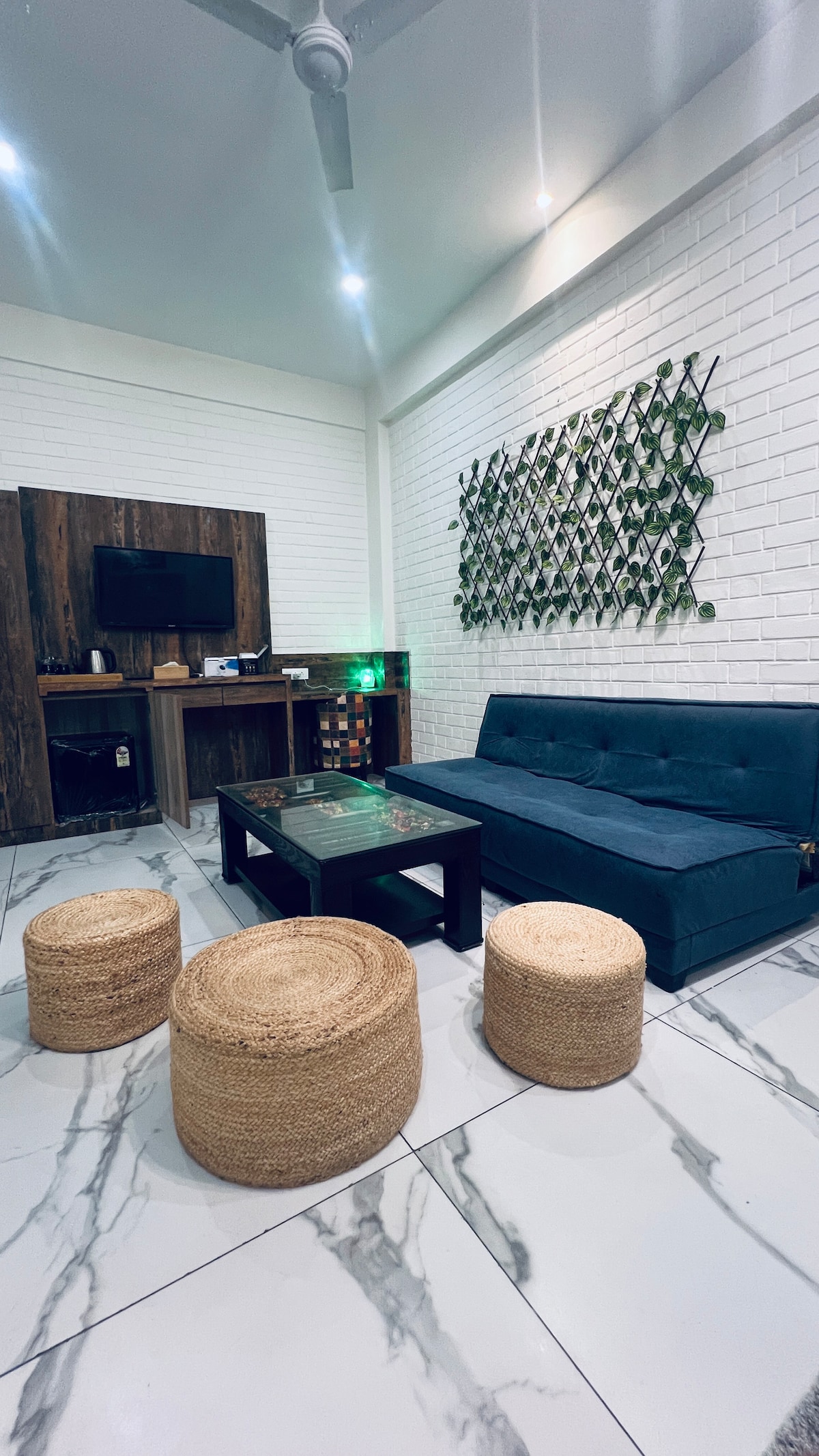 Bring your family or group of friends to this beautifully designed space that blends comfort, style, and a prime location in the heart of Gurgaon. Whether you're in town for work or a weekend getaway, this cozy home offers everything you need - spacious bedrooms with plush beds, built-in wardrobes, and clean, private bathrooms for a relaxing stay. The open-concept entryway creates the perfect setting to enjoy quality time, play games, share meals, or simply unwind together — just like home.