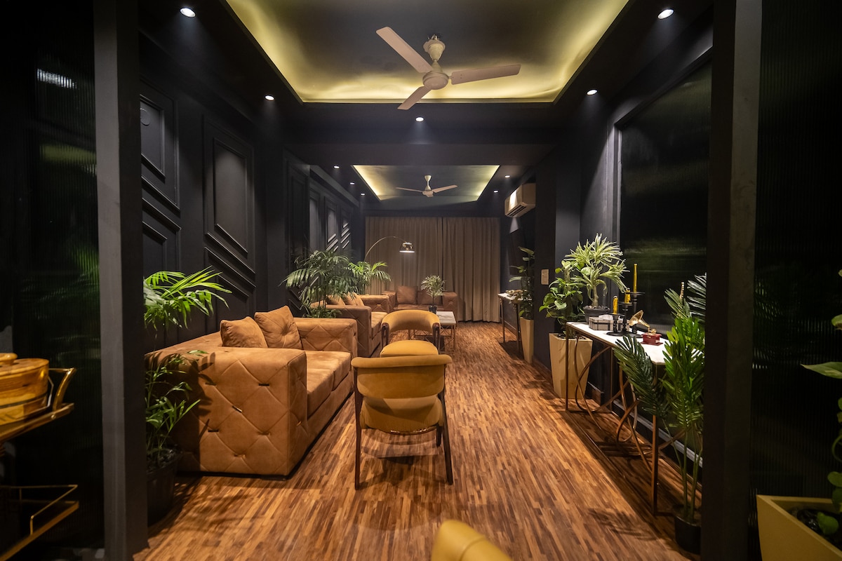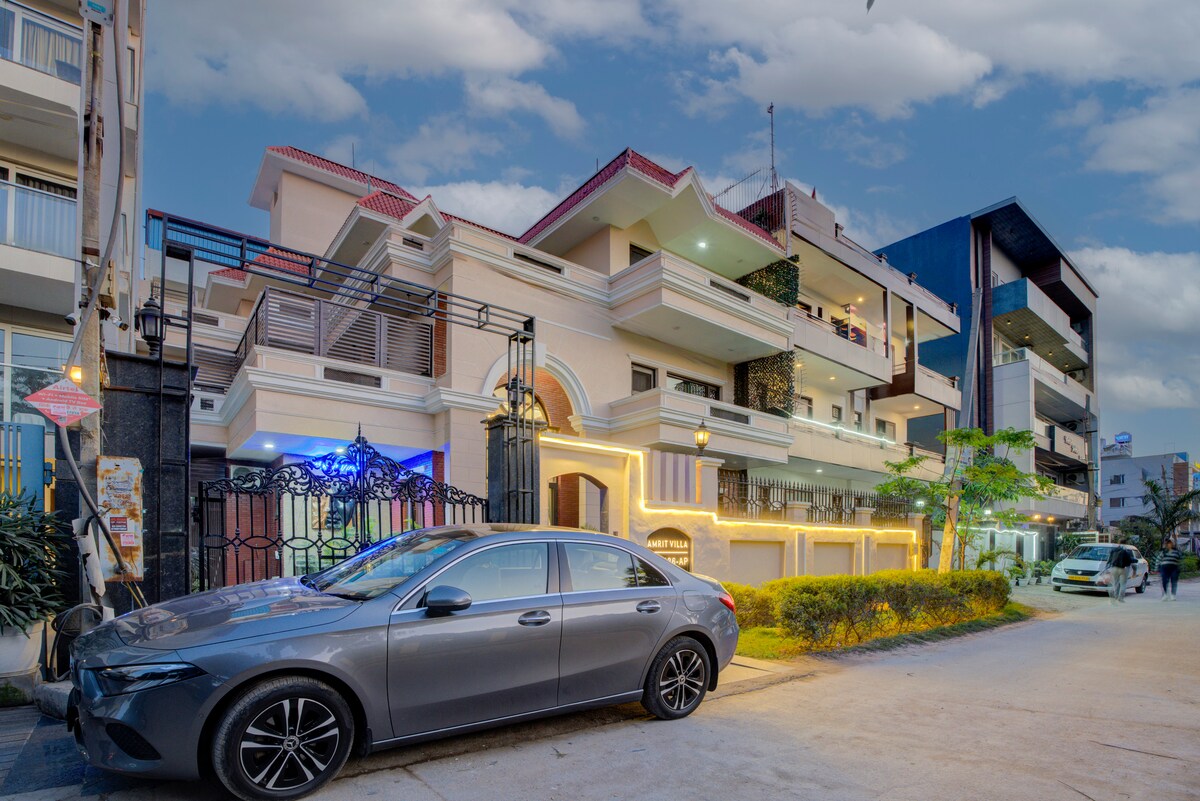 ◆ 4-bedroom villa featuring two living rooms and a stylish loft bed. ◆ Nearby Attractions: ✔ Aravali Biodiversity Park – 2.0 KM ✔ Ambience Mall – 6.8 KM ✔ Cyber Hub – 7 KM ✔ Indira Gandhi International Airport – 16.6 KM ◆ Enjoy movie nights in the home theater with comfy seating, AC, large screen & immersive sound. ◆ Gaming room with a pool table & bar counter – perfect for fun evenings. ◆ Terrace with city views – ideal for relaxing sunsets.