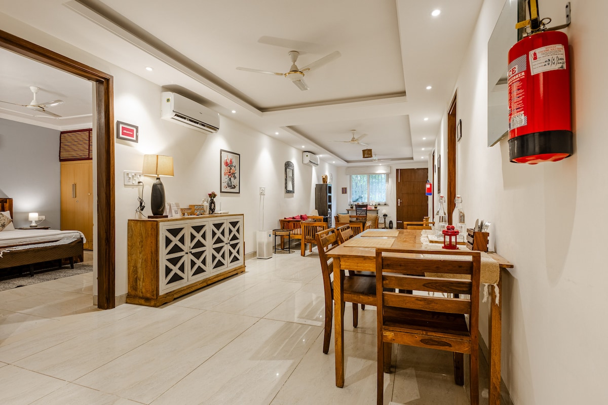 An ideal base in Delhi — spacious, clean & beautifully maintained in the heart of the city! • For wedding shoppers— South ex, Defence Colony & Shahpur Jat designer stores just 4-5 minutes away • Perfect for families, large groups & tourists who want comfort, space & a quiet central location • Convenient for day trips to Agra, Mathura, Jaipur, Vrindavan If you're visiting for a short trip or an extended stay, you'll feel right at home — & like many of our guests, you may just come back again!