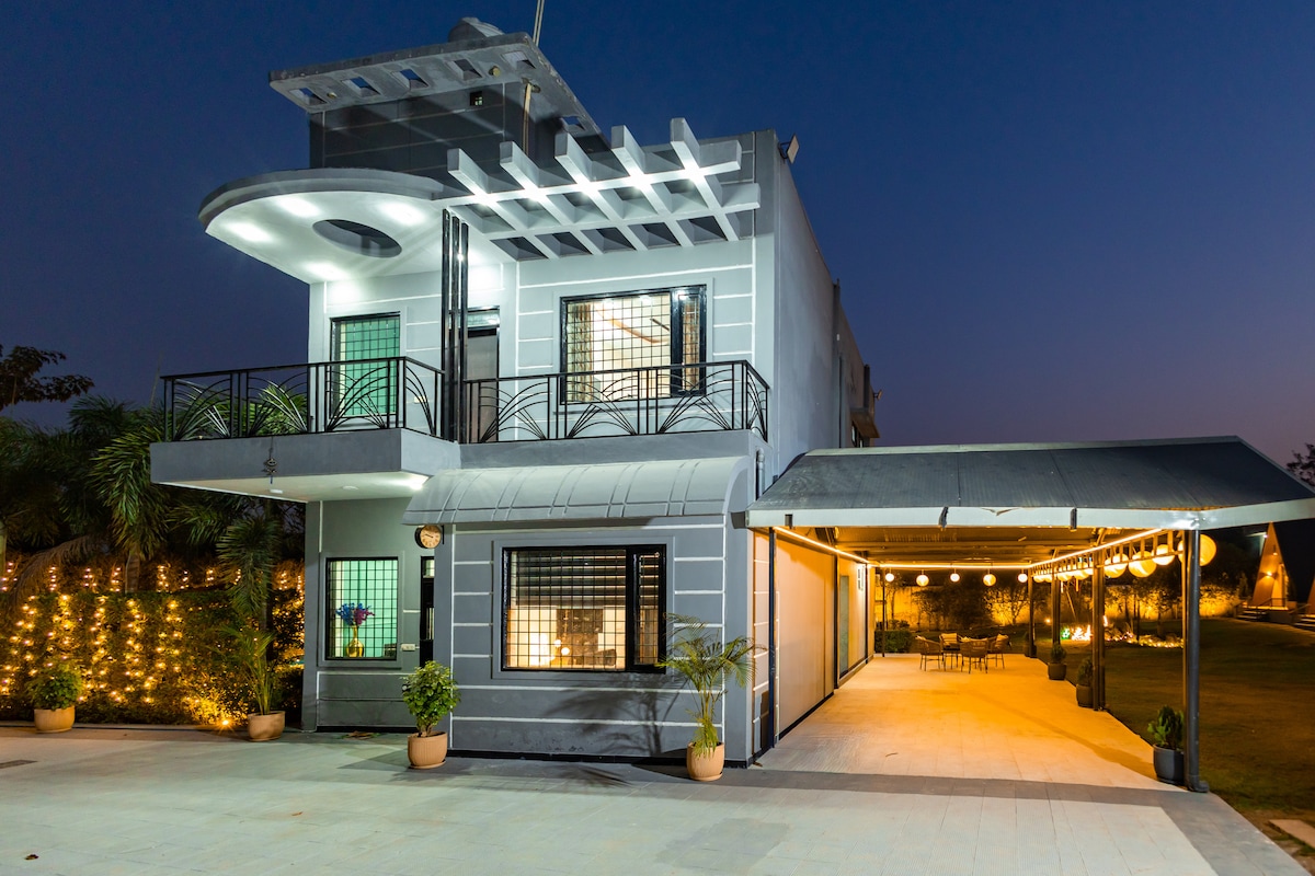 ◆ 4-bedroom villa featuring two living rooms and a stylish loft bed. ◆ Nearby Attractions: ✔ Aravali Biodiversity Park – 2.0 KM ✔ Ambience Mall – 6.8 KM ✔ Cyber Hub – 7 KM ✔ Indira Gandhi International Airport – 16.6 KM ◆ Enjoy movie nights in the home theater with comfy seating, AC, large screen & immersive sound. ◆ Gaming room with a pool table & bar counter – perfect for fun evenings. ◆ Terrace with city views – ideal for relaxing sunsets.