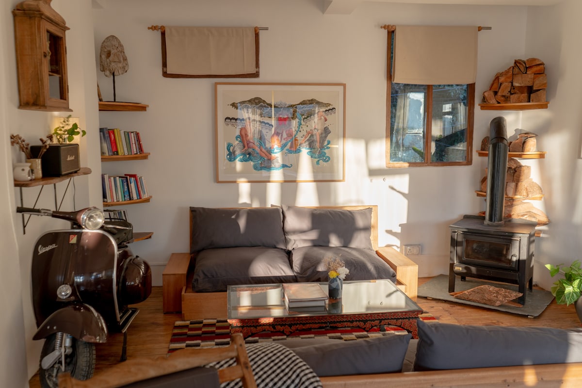 The Space Above BnB is a thoughtfully decorated home to feature art, coffee, and mindful living to create the peaceful environment for a relaxing stay. Located right above The Other Space Cafe in Jogiwara Village, this home comes equipped with all the modern amenities one needs. Guests have a big open terrace garden to enjoy the view of the Dhauladhar mountain range, a dedicated work area with fast internet, and a cafe right below which offers all guests a complimentary breakfast everyday.