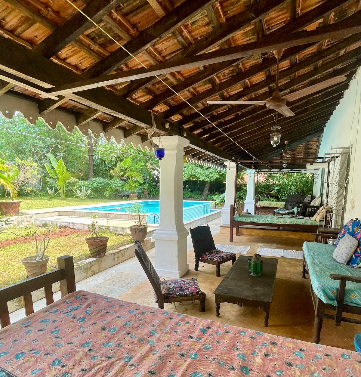 Tucked away in serene Bastora, North Goa, Casa Amore is a soulful 4-bedroom private pool villa just 25 minutes from Mopa Airport and under 10 minutes from Assagao. A timeless Indo-Portuguese home with graceful curves, arched windows, skylit bathrooms, and breezy balconies, it blends old-world charm with modern luxury. Lush greenery, a generous pool, and seamless indoor-outdoor living create a calm, elegant escape filled with light, warmth, and quiet beauty.
