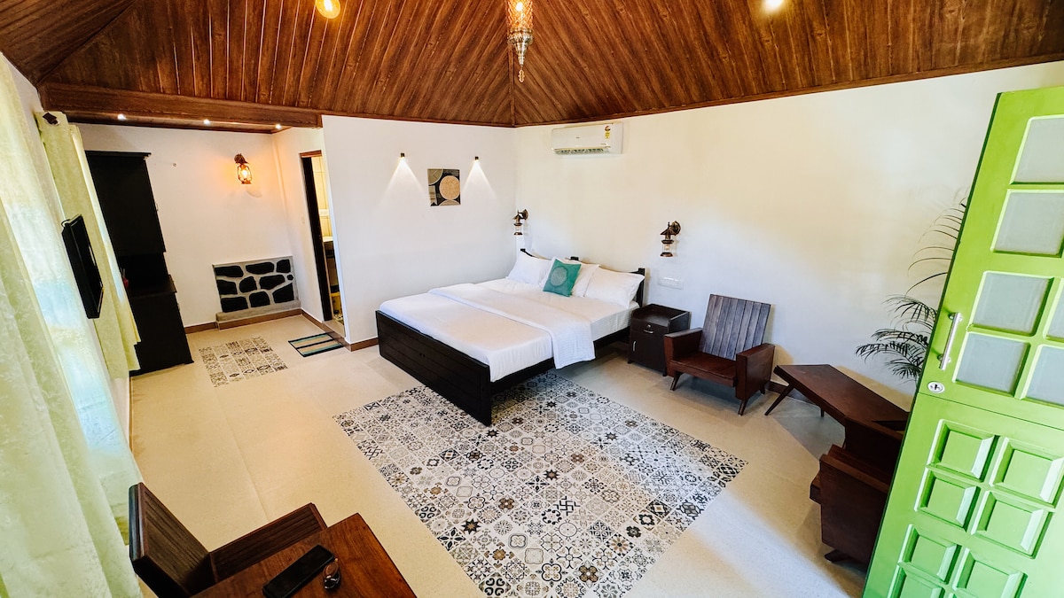 This 3-bedroom villa "IKSHAA®" with a private swimming pool is one of the most secluded and romantic villas which combines luxury with rustic beauty! It's a standalone villa epitomizing exclusivity and complete privacy. The greenery and forest around is charming and yet it is just a 20 mins drive away from the Goa airport or from the nearest beaches of south Goa. You will have no trouble feeling right at home here at IKSHAA® in Loutulim!