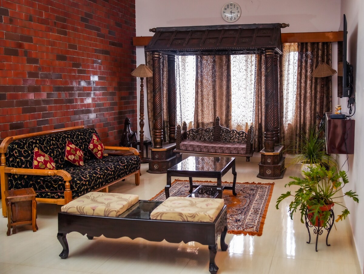 Step back in time at Verdant Heritage Bungalow. This charming colonial bungalow sits in the heart of Fort Kochi. You'll have the entire, private upper floor to yourself, complete with a luxurious master bedroom with AC, a cool spare bedroom (also with AC), and a breezy balcony. If the lone bathroom is insufficient, feel free to use the ground floor bath room. Explore all the nearby sights on foot as they are just a stroll away. We don't live here but just a quick 15-minute call away.