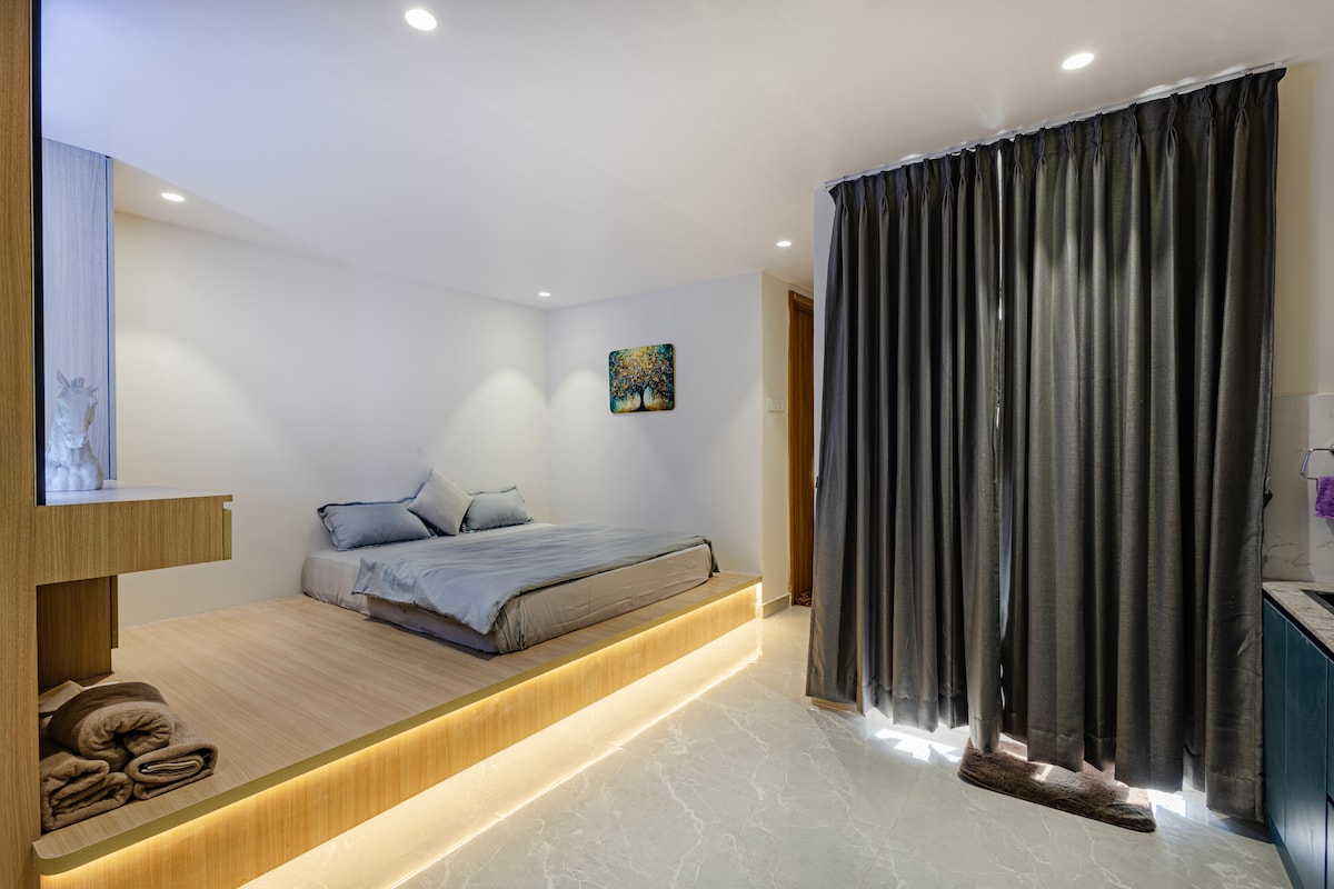 🌈The listing is for a cozy bedroom🛌 with a queen size bed and an attached bath with a couple sized bathtub 🛁 and all amenities for your comfortable stay 😍. The washrooms are designed on the lines of Balinese architecture🛖 to make you feel like you're in Bali🇮🇩 You can lay back on your bed and watch your favourite series📺and take a nice hot relaxing bubble bath🛀 with a glass of your fav drink🥂 and truly fall into that holiday state of mind..! 🥳