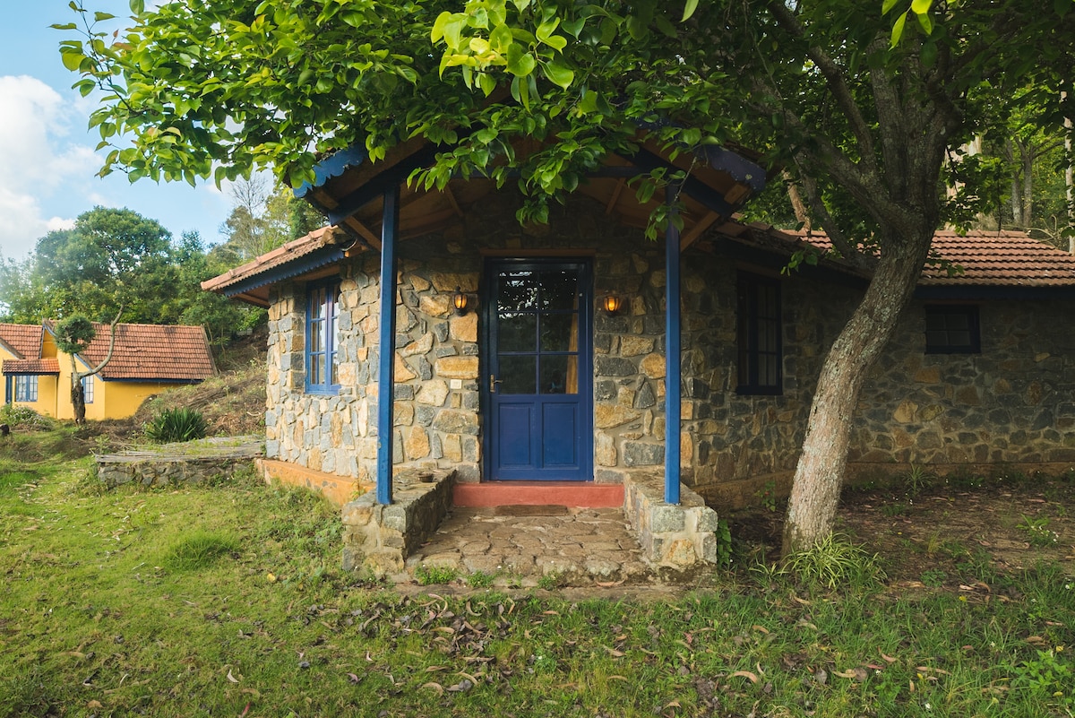 An independent cottage on stilts with wall to wall windows that offer great views of nature around & a balcony to complement this. Perfect for birders, nature enthusiasts, pet parents & people who want to chill amidst thick forests. Please note: The access to this cottage is a stoned staircase of around 25 steps down. People with mobility issues or obesity will find it difficult to access.
