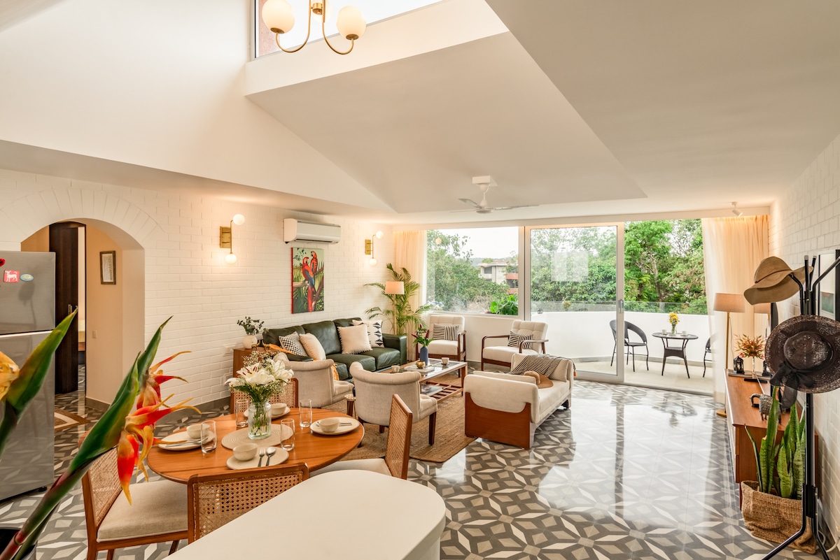 This serene, inviting space embodies the essence of the Ocean, Sky & Earth. Flooded with natural light, it features spacious bedrooms, gleaming bathrooms, a fully-equipped kitchen & a private garden with Gardenia, Jasmine, Banana & Frangipani trees. Located in a gated community with a swimming pool, housekeeping, 24/7 security, free parking & a cook-on-call. Enjoy deliveries from Goa’s finest restaurants & easy access to Ashwem, Mandrem, Morjim, Anjuna & Vagator beaches - just 10-15 mins away!