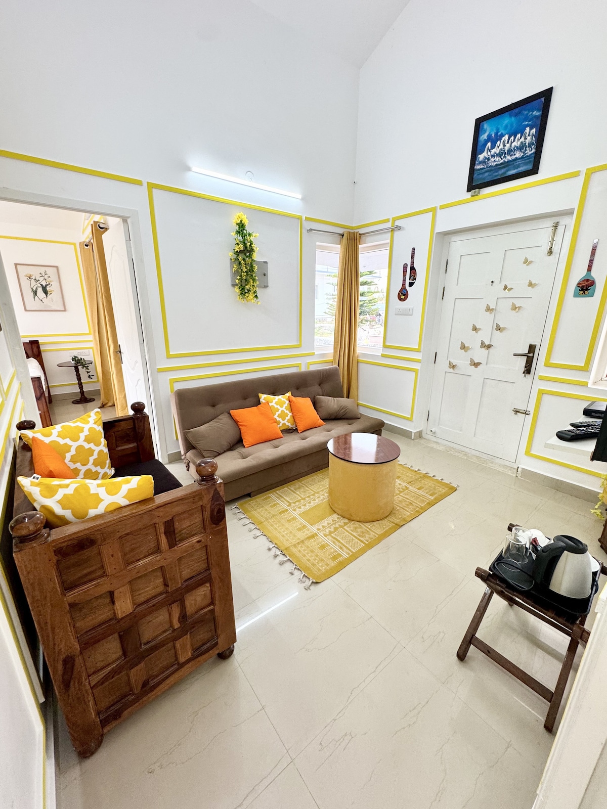 Welcome to your sustainable urban retreat—a fully loaded, eco-friendly suite inspired by cockpit design. Experience mindful living with modern comfort and inventive style, offering a peaceful escape from city life. Enjoy your morning coffee in the private garden and relax in a pet-friendly environment. Every detail reflects our commitment to sustainability, creating a memorable and consciously refreshing stay. Discover slow living and thoughtful design in vibrant North Bangalore.