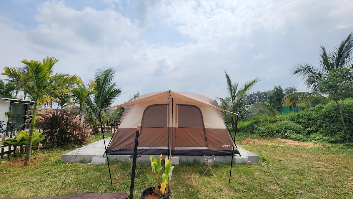 Get away from it all when you stay under the stars. Ours is a tent stay with customised outdoor bathroom and restroom. We are pitching the tent in our Kalam in front of our house located in the farm. As our property is on the foothills of the western ghats the Mountain View serves you on all directions. This quiet place is purely for Nature lovers . We have 3 listings.( VANAM, VANAM tents, Cozy VANAM tents) offering three options and pricing. Kindly check and book as preferred.