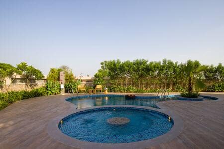 A beautiful 4 bedroom wooden villa with hydro pool situated in a prime locality in the heart of Siolim. It's a well lit & completely furnished villa with a living room, functional pantry and a private sit out area surrounded by greenery on all sides . It's very close to the famous Vagator & Morjim beach and Chapora Fort making it a great home base, while exploring all that Goa has to offer. There are multiple restaurants, wine stores and supermarkets around to suffice all your vacation needs.