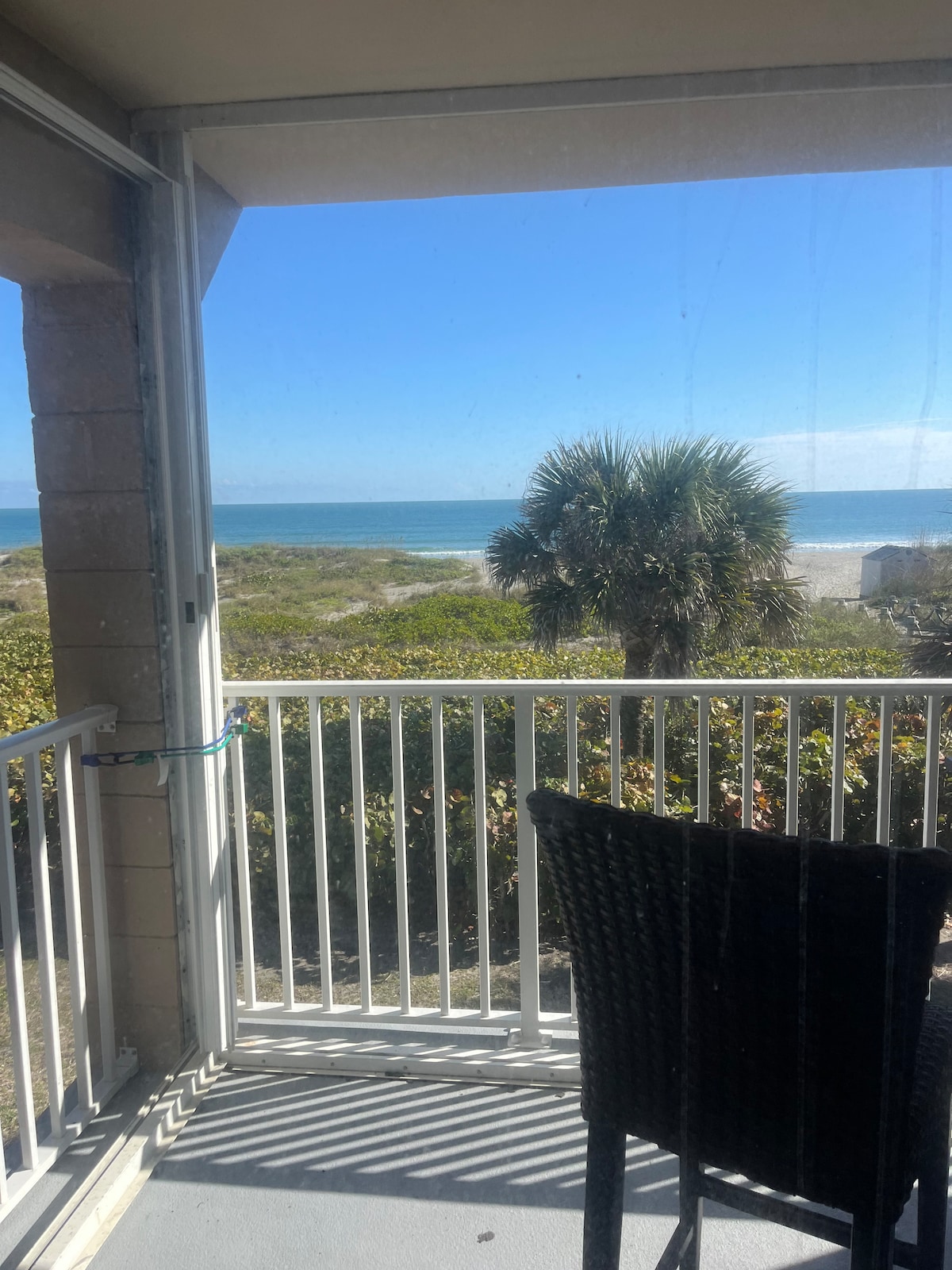 Relax Enjoy nature! 2/1 for up to 6 guests. Quiet 20 unit building. 1st floor unit in front of bldg w partial ocean view. Walk 50 steps to ocean. Tent, beach chairs, coolers, and towels provided. Enjoy memorable sunsets or rocket launchings from the backyard. Go on a sea turtle walk. Fully equipped kitchen with cable and Wi-Fi included. Washer/dryer in the building. Restaurants within walking distance. Publix is 3 minutes away. No Pets.