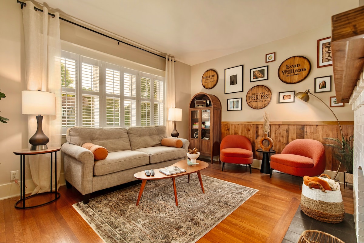 Comfortable, spacious, conveniently located!! Nestled in the sought-after Upper Highlands area, just one block from the lively Bardstown Rd, this 3 bedroom, 2 bathroom home offers a peaceful retreat with easy access to all the city has to offer. Fully stocked kitchen, comfortable beds, and spacious living areas, this 2500 square foot home can accommodate up to 6 guests, making it perfect for families, couples, or groups!
