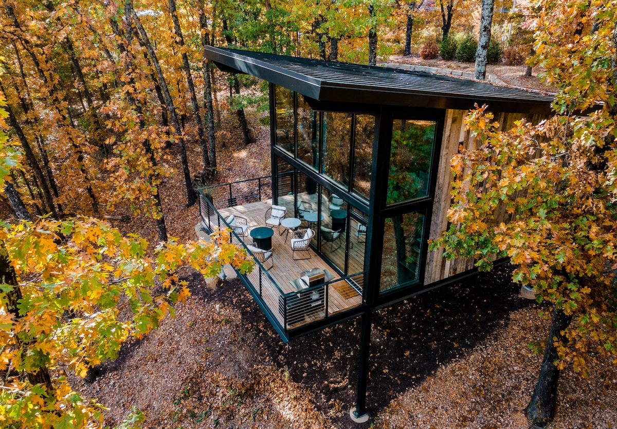 Welcome to The Tree + House at Indian Point! This custom luxury treehouse was built with comfort and relaxation in mind. Perfect for up to four guests, it’s surrounded by forest and filled with natural light from floor-to-ceiling windows that showcase stunning views of Table Rock Lake. You’ll feel tucked away in your own private retreat, yet still be just minutes from the water and Silver Dollar City. It’s the ideal mix of peaceful nature and modern style.