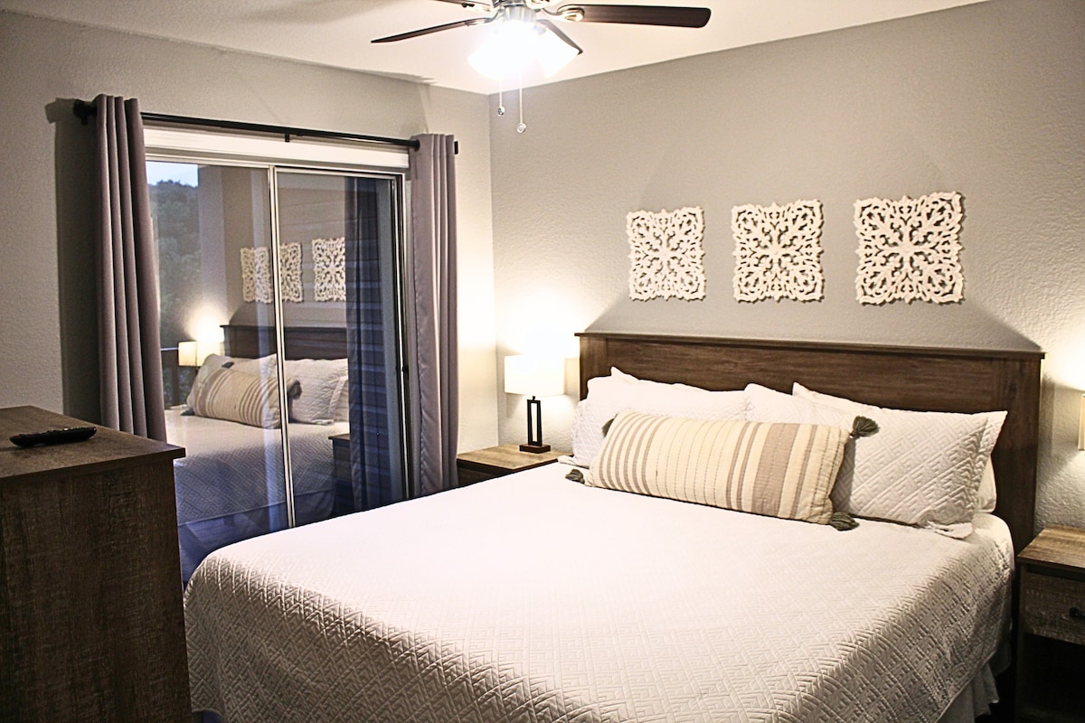 Enjoy Branson and relax in this REMODELED luxury condo. WALK IN LEVEL AND NO STEPS. Parking is directly in front . Elegance and luxury awaits you in this stunning condo that provides you with beautiful decor, furnishings, upscale amenities, and the perfect location in the Heart of Branson. Centrally located in Branson, yet tucked away among the trees near the Thousand Hills Golf Course. Just minutes away from all the attractions Branson has to offer.