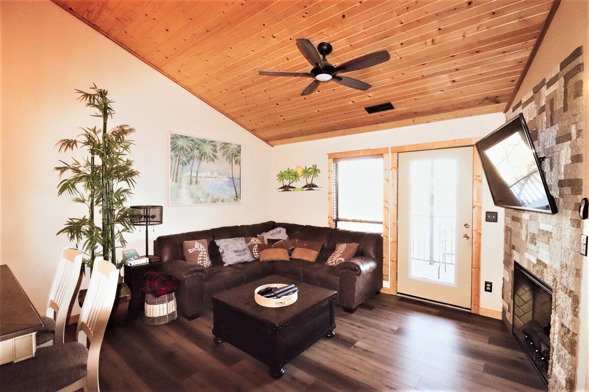 ❤️ Waterfront 2-bedroom on Indian Point, Sleeps 8, just a 3-minutes to Silver Dollar City and 5-Steps from the Lake! 5-boat docks for fishing, swimming & relaxing, 2-boat launches, 2- Swimming pools just a short walk along the lake with horseshoes, shuffleboard, and wildlife galore. Deer, fox, racoons, eagles, and an occasional fish on your line. Very quiet and peaceful setting with wood burning fireplace and private deck overlooking Table Rock Lake. Perfect Getaway! FREE Kayaks in season!