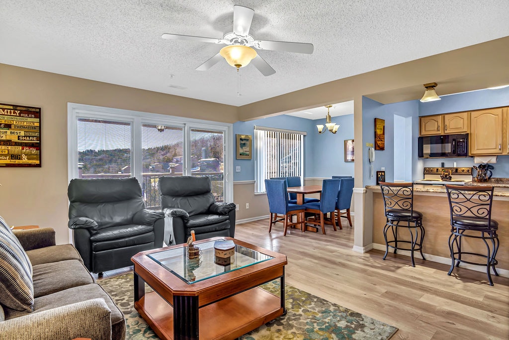 Welcome to Central Perk! This unit is designed for rest and relaxation. Within walking distance to Table Rock Lake. Enjoy nature and wooded views from the 21 ft deck. Located away from Branson traffic, yet only minutes to the shows, restaurants and shopping. The Cove on Indian Point is the closest resort to Silver Dollar City, just minutes away. You can actually hear the roller coasters and train from outside the unit. That’s how close you are….