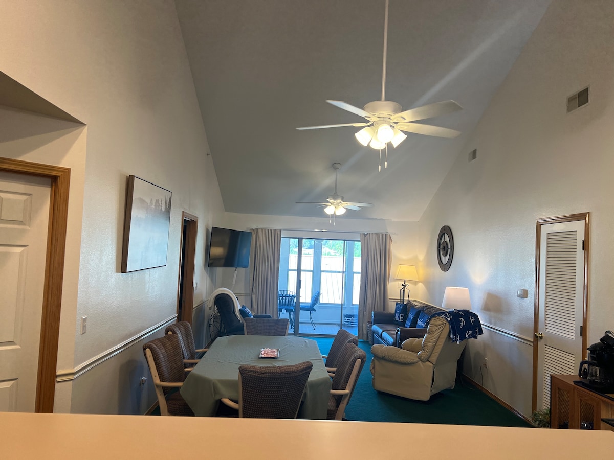 Escape to our cozy 2-bedroom, 2-bath condo on Table Rock Lake, perfectly situated just minutes from Silver Dollar City on Indian Point. Enjoy serene lake views and modern comforts, including a fully equipped kitchen, spacious living area, and private covered balcony. With easy access to local attractions, hiking trails, and lake activities, our condo offers the ideal retreat for families and friends. Experience the best of lake life and entertainment in one perfect getaway!