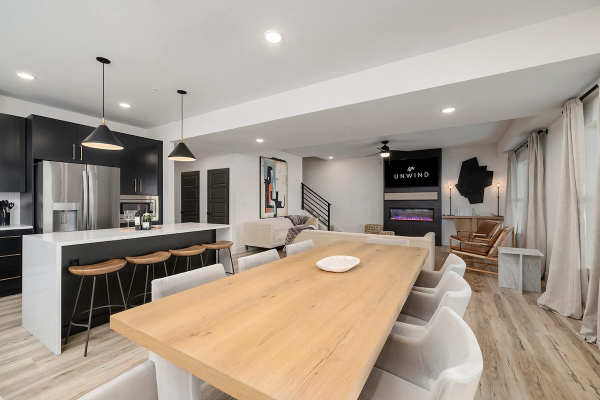 Discover Our Modern 2370 sq.ft. Luxurious Cabin - Sleeps 8! Ideal for Family Getaways with a Fully Equipped Modern Farmhouse Kitchen, 3 Bedrooms, 3.5 Baths, and Kid-Friendly Grohe Showers, tubs. Enjoy 2 King Bed, En-Suites, and a Third Bedroom with 2 Single Twins and a Bunk Bed. Indulge in Luxury with Provided Linens & Bath Towels Indulge in luxury with high thread count linens and plush bath towels provided for your comfort. The cabin offers a second living room for those moments when you need