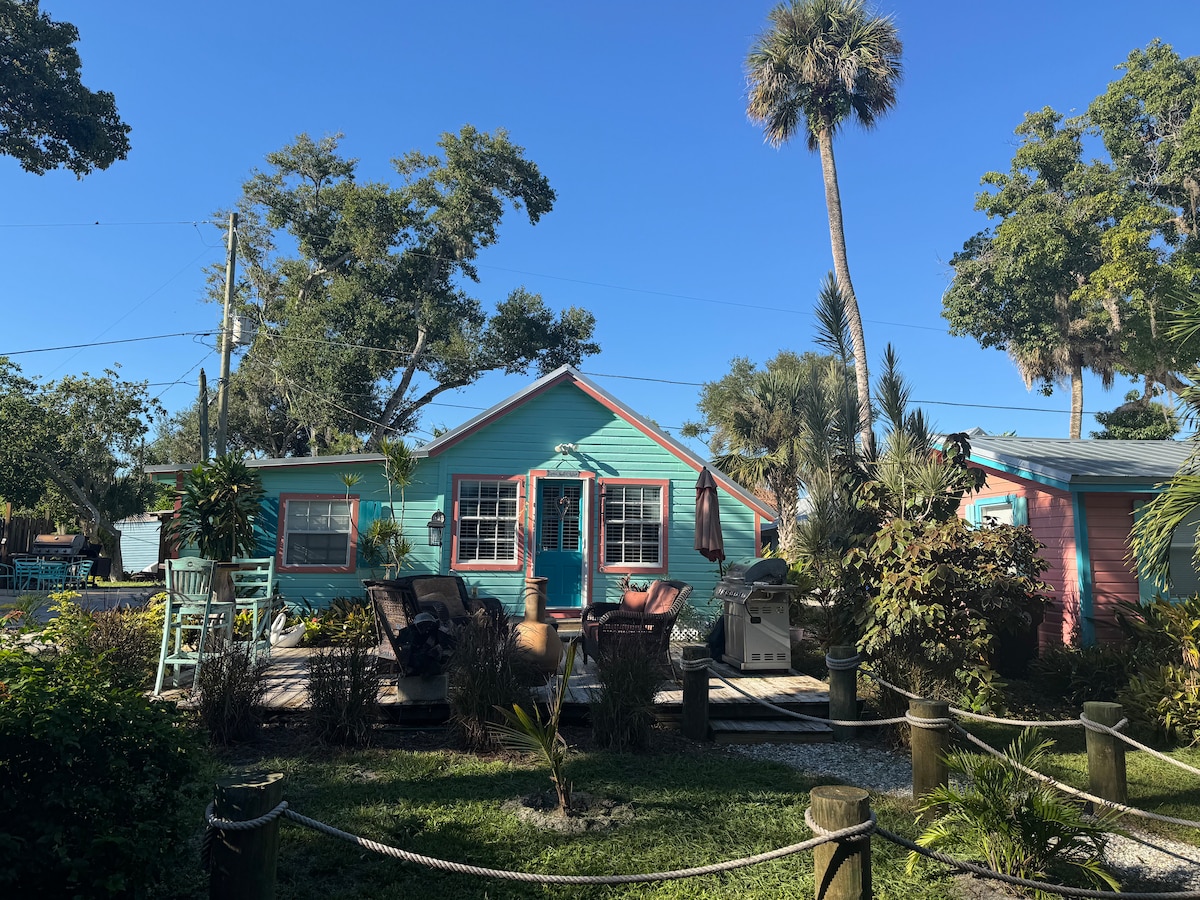 Discover your artist's retreat just 6 miles from the shores of Vero Beach, FL! Nestled within 2.5 miles of historic downtown and a mile from Dodgertown, our charming 1950s cottage awaits. Immerse yourself in nostalgia with a record player and picnic basket. Our cozy haven invites you to unwind in our backyard or on the front porch beside a fountain. Step into our Florida room, featuring a screened patio, fireplace, and TV, where you can enjoy your coffee amidst refreshing breezes.