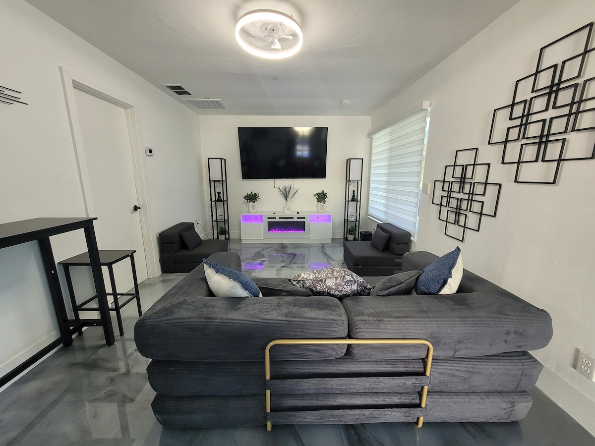 COCKTAIL POOL -FULLY FENCED BACKYARD 🏖️Enjoy a stylish experience at Our centrally-located Home. “East of 1 Surf House” is only 1 miles to South Beach, bike to beach ( bike provided) ,Our Beautiful Local Beach all you need from comfy beds,everything in your NEW Kitchen,Laundry Room, Living room , Outdoor Pergola & Hot/cold shower. Grocery Stores and Restaurants within a short drive or Walk. Art District and Riverside Park 5 minutes away. Vero Beach Marina 5 minutes away, Miracle Mile 5 minutes