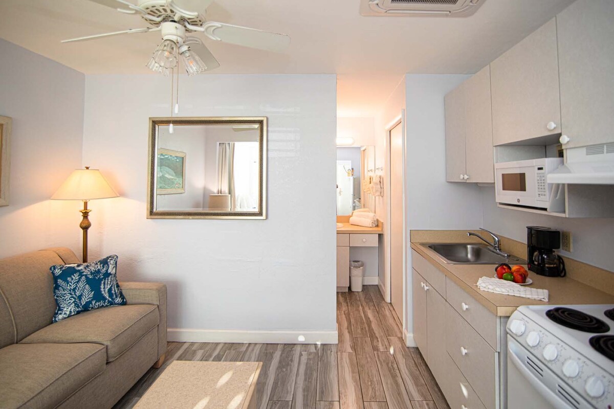 Discover the perfect Atlantic escape in our airy 1-bedroom condo. Designed for up to 4 guests, the suite features a private master bedroom and a queen sleeper sofa. Enjoy the convenience of a full kitchen—perfect for beachside breakfasts—and a breezy living area that opens to the salt air. Steps from your door, dip into the oceanfront pool or walk directly onto the sand. Located on iconic Ocean Drive, you're walking distance to Vero’s best boutiques and dining. Your seaside home awaits.