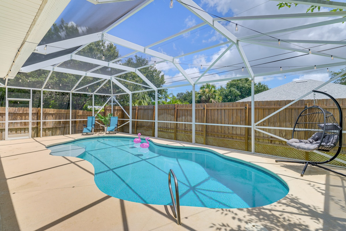 棕榈天堂!加热泳池、Lanai电视、带围栏的院子!