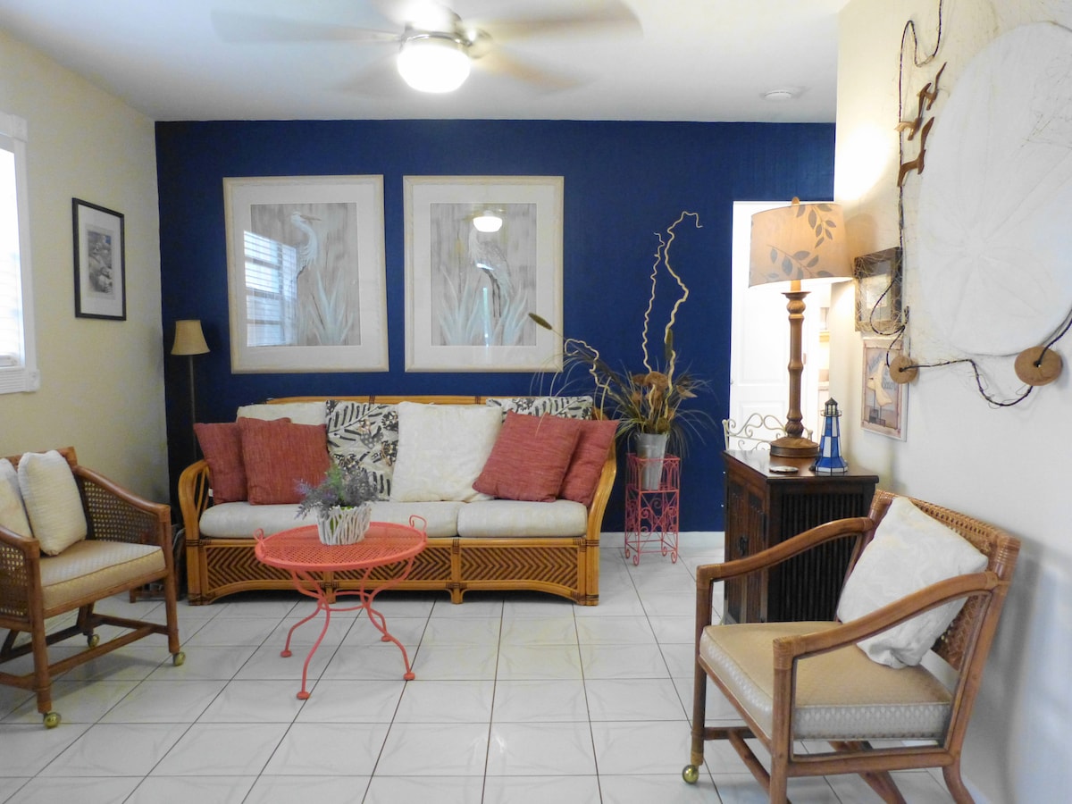 Just a short walk to the beach, this a great beach getaway for couples or families with one child. On your way stop at the Cooky Coconut for lunch, an awesome milkshake or a variety of snacks. With a totally new renovation in 2024, this unit is updated, very clean & worry free. This cottage is located in a quiet residential neighborhood and a great place to relax. Laundry on shared screened porch. Dogs allowed ($35 extra) add them on # of guests page . Easy refund policy. Level 2 EV charger