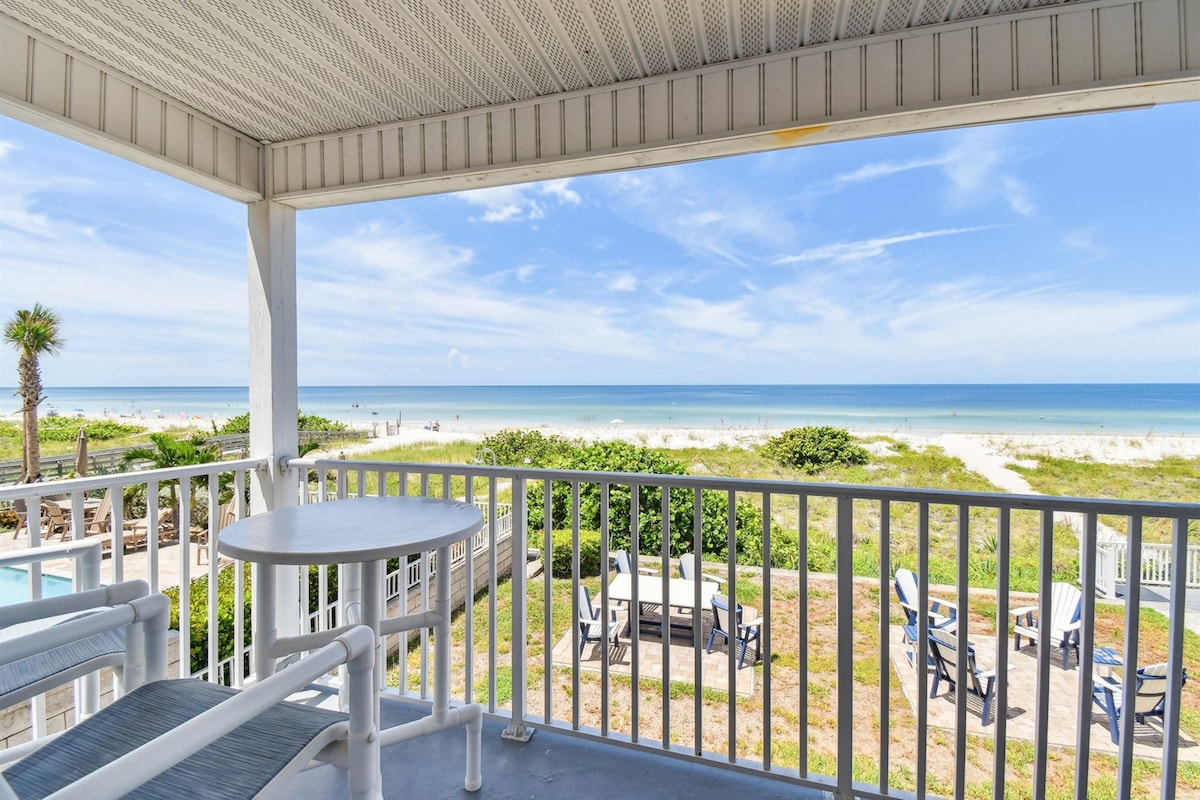A newly transformed beachfront Condo offers five-star accommodations in sleepy Indian Shores, Florida. This is the second renovated unit by a Superhost/owner. This unit is only feet from the beautiful white sand & crystal clear water. The sunsets are epic from the balcony. Several great restaurants & bars are within walking distance of your front door. Amenities include a fully stocked kitchen, heated pool, SmartTV's, high speed Wi-Fi, reserved parking and only minutes from the Tampa airport.