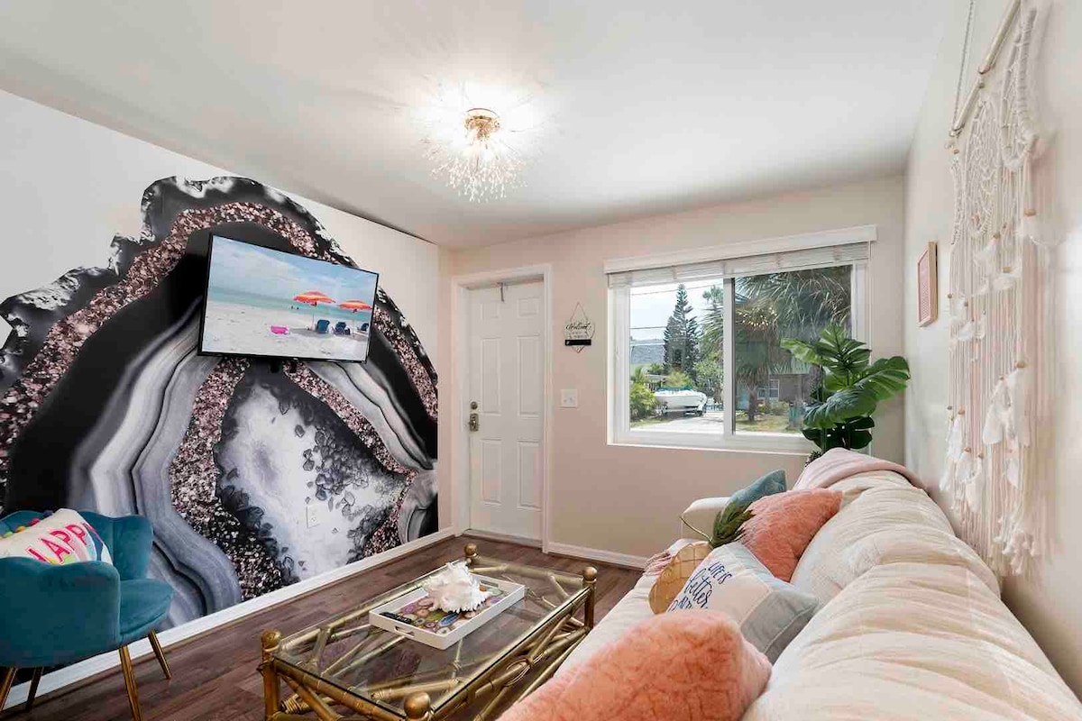 Escape to paradise at Sunshine Escapes IRB! Welcome to Mango, nestled in the heart of Indian Rocks Beach. IRB is a hidden gem radiating a whimsical, small-town charm that evokes nostalgic memories of carefree childhood summers by the shore. Just ✌🏽 blocks away, the Gulf of Mexico beckons, offering pristine fluffy sand and unforgettable sunsets. As the sister cottage of Coco, Mango invites you to immerse yourself in the laid-back beachy vibes of IRB. Your perfect beach getaway awaits!