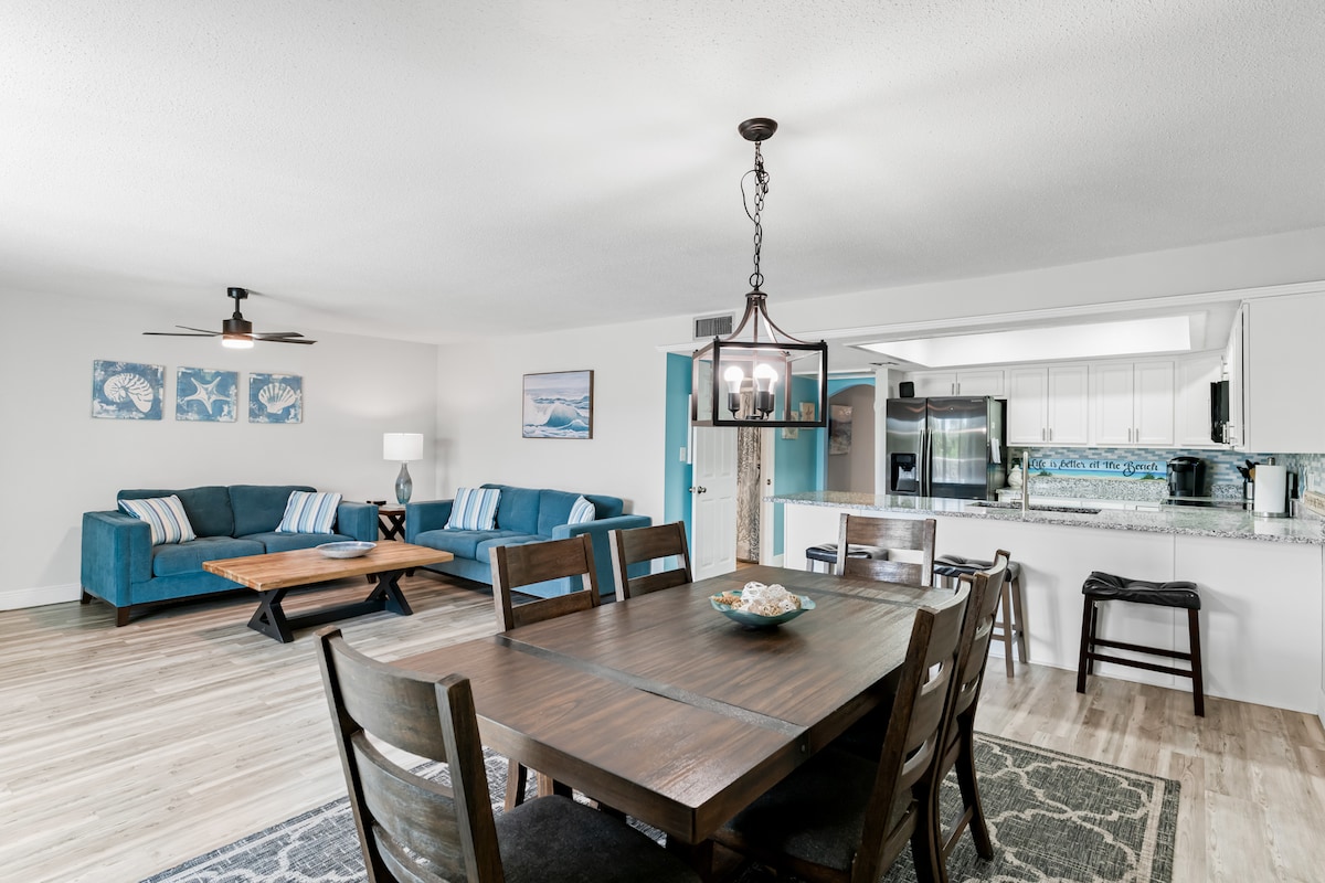Perfect, quaint and private two-bedroom townhome on the gulf. Stay on the beach with all the comforts of home. Enjoy beach access anytime but with the luxury of a two-car garage to explore the area without worry. Sit on the enclosed screened balcony to enjoy breakfast with treelined and sunrise views for a secluded escape or benefit from a fully renovated kitchen to cook whenever you please. We are fully committed to expert cleaning between guests.