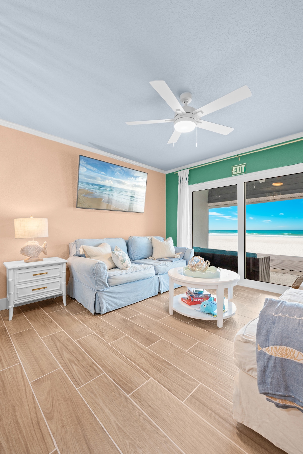 Fully remodeled in 2025! We’re back & better than ever! New photos coming in November. ON Private Beach with breathtaking Gulf views! This 1 bedroom unit w patio leading to private beach features full kitchen, king bed and sleeper sofa, sleeping 4. Smart TVs, furnished linens, towels, toiletries, beach towels, beach chairs & gas grill for your use. Free parking included. For additional availability see IDENTICAL unit same location Tide Vibes #7 and 2 bedroom unit #5, sleeps 6.