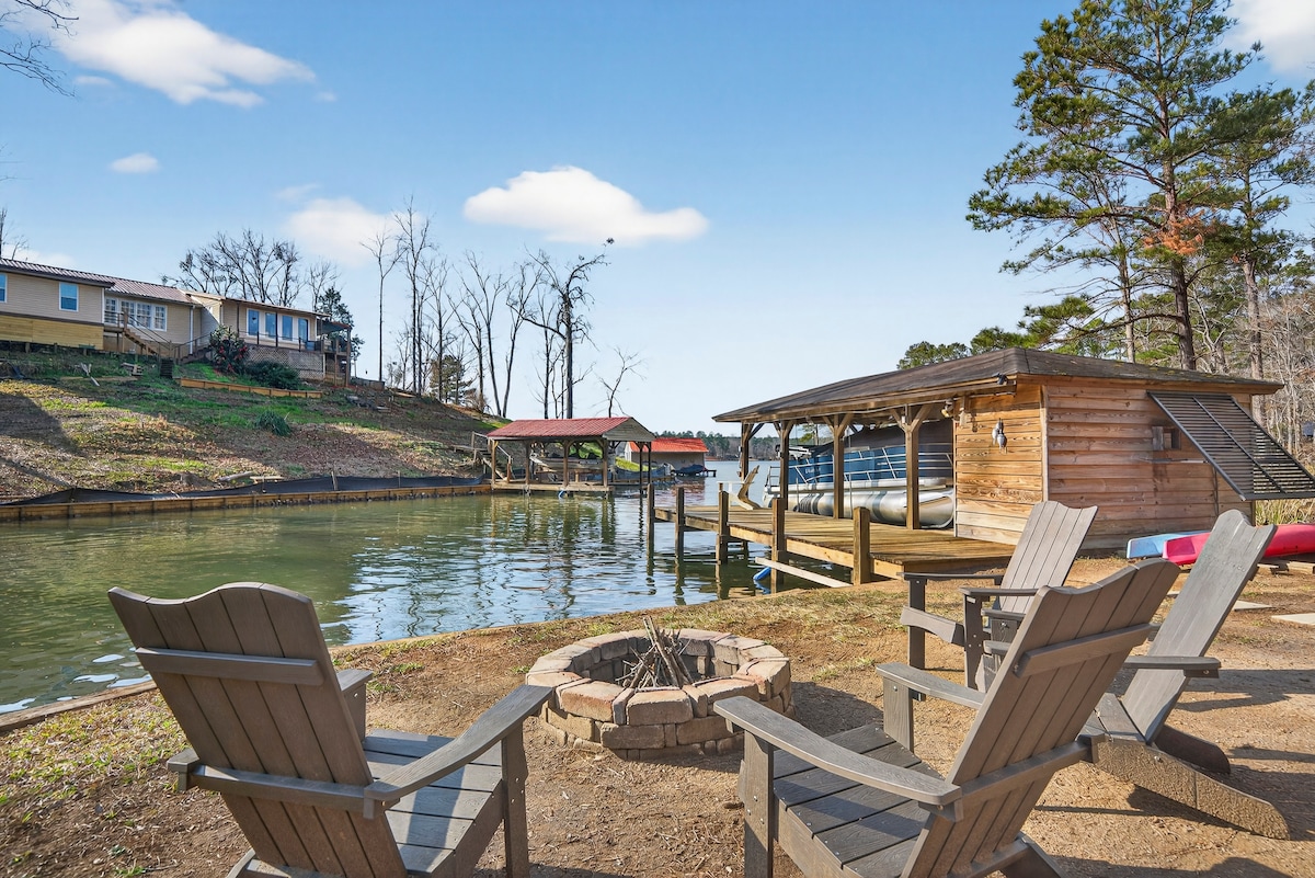 *License # STR2026-066 Morning begins in a quiet Lake Oconee cove where paddle boards and kayaks rest beside the dock, ready for a slow start on the water. This four bedroom waterfront home blends lakeside outdoor living with multiple gathering spaces inside, including a lower level game room and bunk retreat. Evenings settle around the shoreline fire pit or on the deck overlooking the cove, with calm water reflecting the lights of the home as the day fades.