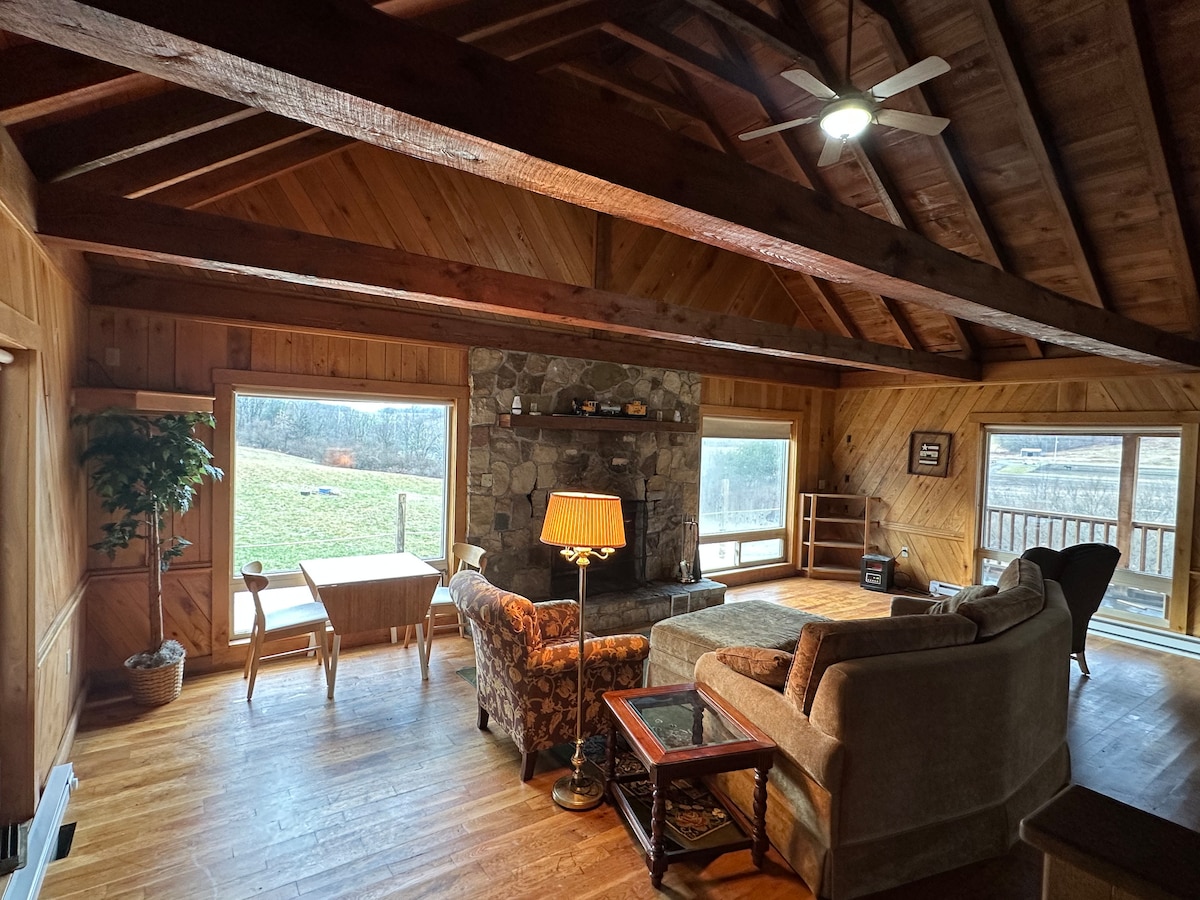 Rustic and charming getaway in the Laurel Highlands. Enjoy country surroundings 3 miles from downtown Ligonier and all its wonderful shops and restaurants. Contemporary kitchen, gas fireplace and wood burning stove, sunny sunroom and rustic fire pit are a few of the amenities that will make you feel welcome. Newly added washer dryer and beautiful new second floor bathroom complete with hillside view from shower window. Rolling hills and wildlife surround this built-into the hillside cabin.
