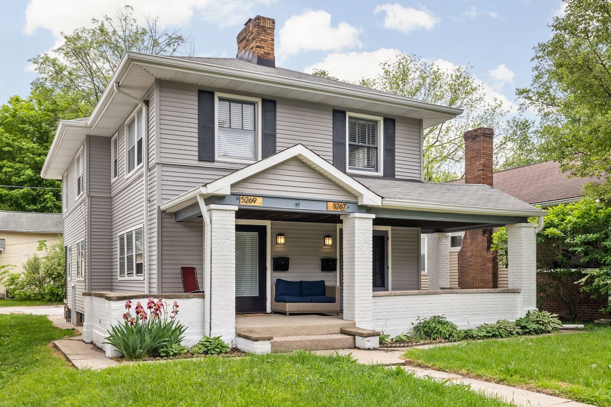 Book a night right on one of the Indy's favorite intersections! Updated 1 bed + 1 bath and outfitted with everything you will need, stay in our half of a duplex across from the upscale grocer, The Fresh Market. This corner has several great restaurants and brew pubs within steps of the front porch. Two blocks away, the Monon Trail resides and is Indy’s favorite way to walk and bike its most eclectic and lively neighborhoods. Bike share rentals are one block away.