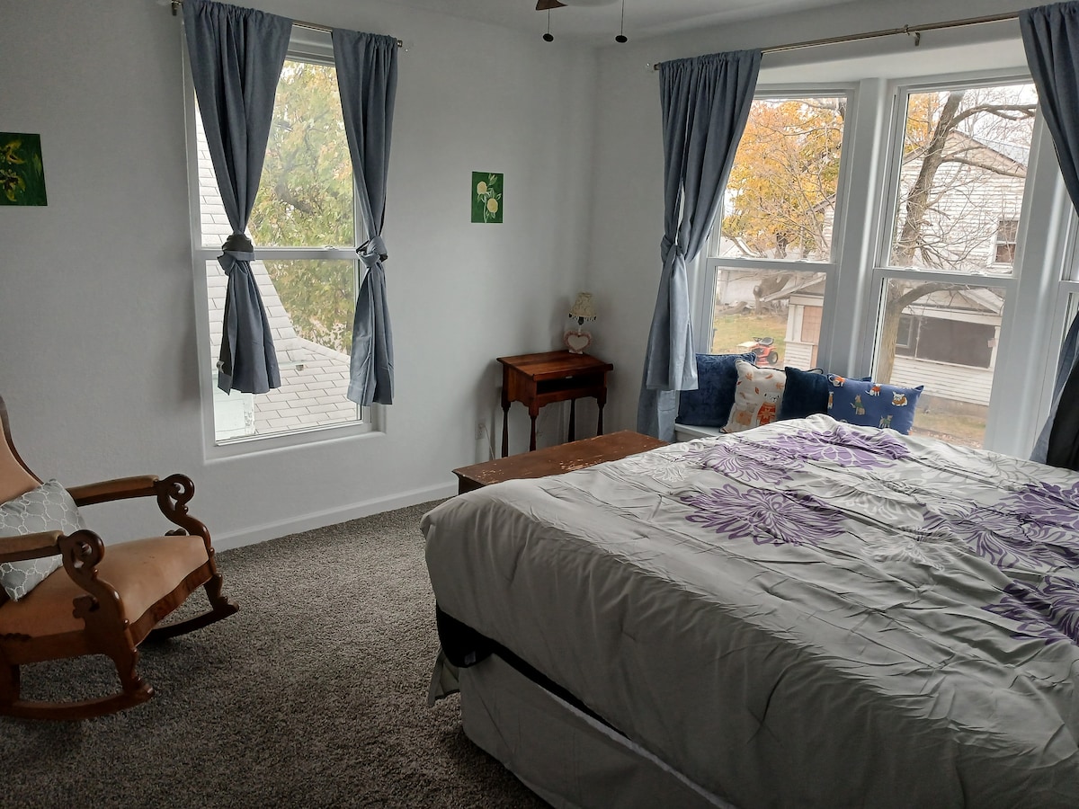 There are three bedrooms available. The master bedroom has a queen bed and attached bath. The second bedroom has a full & twin bed, the third bedroom has a full bed. Both of these bedrooms share a full bathroom. There is a half bath on the first floor. We live on the premises and also provide breakfast. We are 15 minutes from Notre Dame & the Indiana Toll Road exits and 30 minutes from Andrews University. Check for room availability, some rooms are available on reserved dates.