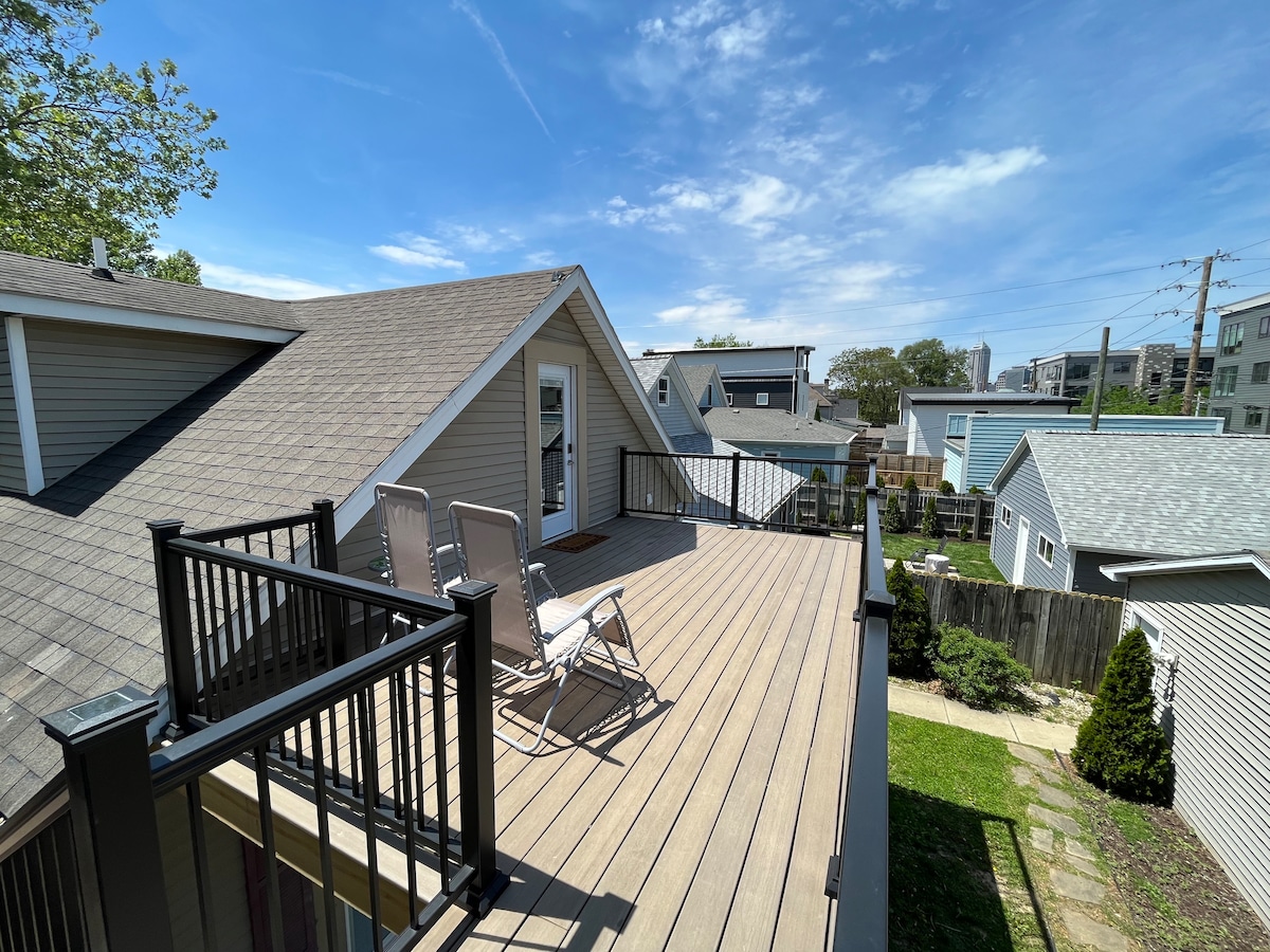 Sleek loft with huge second story deck in the heart of Fountain Square. Newly renovated. Private entrance. Luxury gel memory foam king bed, plush pillows, high quality linens. 2 individual sleeping options. High-speed fiber internet, 60” smart TV, gorgeous full bathroom and kitchenette. Relax on private deck with skyline view! Gainbridge Fieldhouse - 1 mile (18 minute walk) Lucas Oil Stadium - 1.2 miles (24 minute walk) Hi-Fi - 0.4 miles (7 minute walk) Mass Ave. - 1.4 miles (30 minute walk)