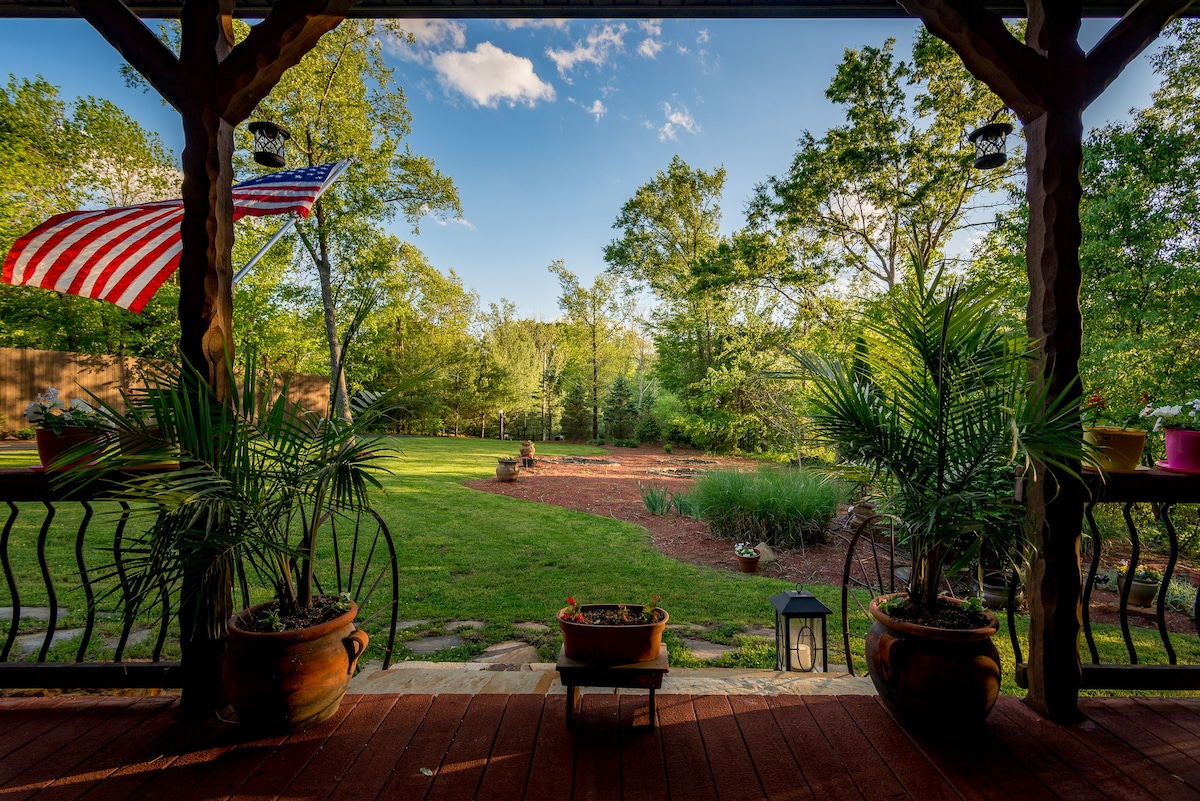 Experience a 40-acre forest reset this Memorial Day. Rejuvenate in the indoor jetted tub with treetop views or unwind at the fire pit under the stars. Enjoy the best of both worlds: total seclusion with on-site hiking trails, yet just 15 minutes from Nashville’s artisan charm and Brown County State Park (pass included). Explore the local galleries, then retreat to the silence of the ridge. Note: As an active ridge top, occasional host sightings or nearby construction may occur.