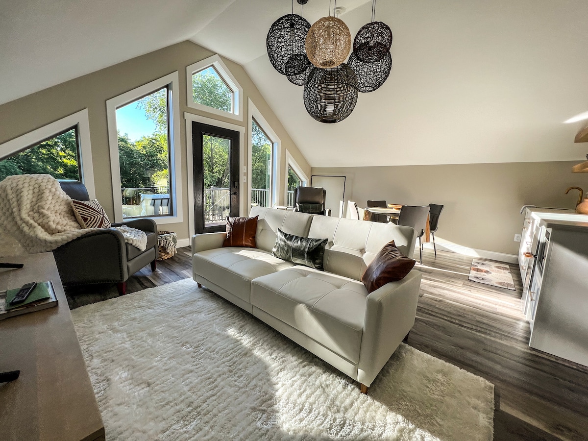 The Edgewood Luxury Loft in the Woods is less than 4 miles from Fort Wayne. You will find yourself enjoying the open floor plan with modern decor, MCM furnishings, fully equipped kitchen with granite counters, bathroom with a rain shower head and claw foot tub, as well as an abundance of natural light. Whether you are looking to secure a space for a work retreat, a romantic get away, or simply a clean and comfortable overnight stay, you will not be disappointed with the Edgewood Luxury Loft.