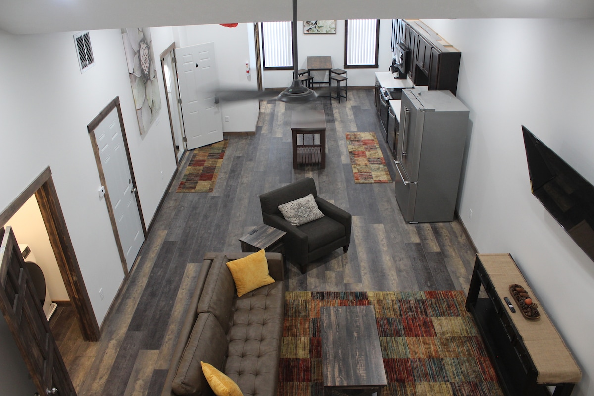 Everything you'll need and more. This is a large, quiet space right in downtown Seymour. And, guests have complete privacy. No one else lives here. This loft has more than 1400 square feet... and is perfect for up to four guests. Both beds have luxurious Serta iComfort memory foam mattresses. There's also a full kitchen and several restaurants within easy walking distance.